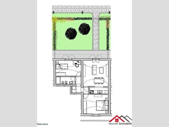 UNITA’ E: appartamento di complessivi 107 mq commerciali posto al piano terra con ingresso indipendente e corredato da giardino privato di circa 90 mq. Internamente è composto da ingresso in ampio soggiorno, cucina, disimpegno notte, due camere, bagno e ripostiglio/lavanderia. Completano la proprietà un comodo e grande garage di 20 mq oltre ad un posto auto esclusivo all’interno del complesso immobiliare.