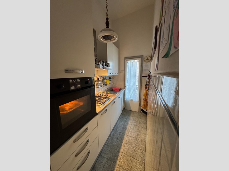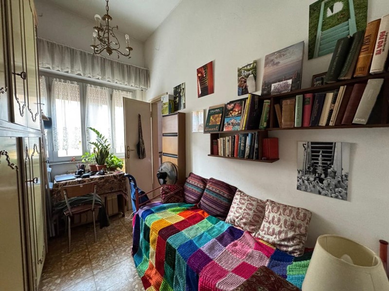 Ingresso centrale, sala con balcone, sala da pranzo con balcone, cucinotto con balcone di servizio, due camere matrimoniali, una camera singola, bagno con finestra. Ampio ripostiglio al piano ammezzato.