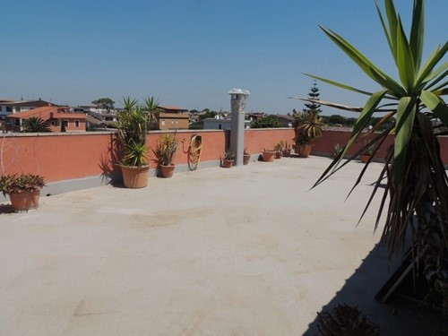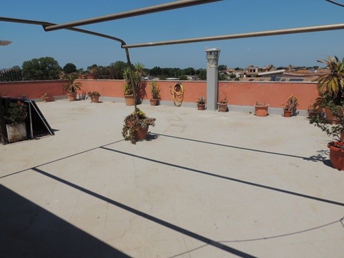 Fiumicino Isola Sacra, adiacente via Trincea delle Frasche, traversa di via S. Accorsi, in piccolo stabile appartamento al 1° piano, ampia metratura residenziale, tripla esposizione, vista e affaccio aperto, divisibile in 2 unità, da ristrutturare, composto da ampio ingresso, salone con camino, cucina abitabile, 3 camere, 2 bagni (entrambi con finestra, 1 con vasca e 1 con doccia), ripostiglio, 2 balconi di mq 10 l'uno, lastrico solare di proprietà adibito a terrazza di mq 126, garage di mq 23 con corte esclusiva di mq 30 ed entrata carrabile indipendente (rispetto all'appartamento), possibilità di parcheggiare 3 auto nella corte;