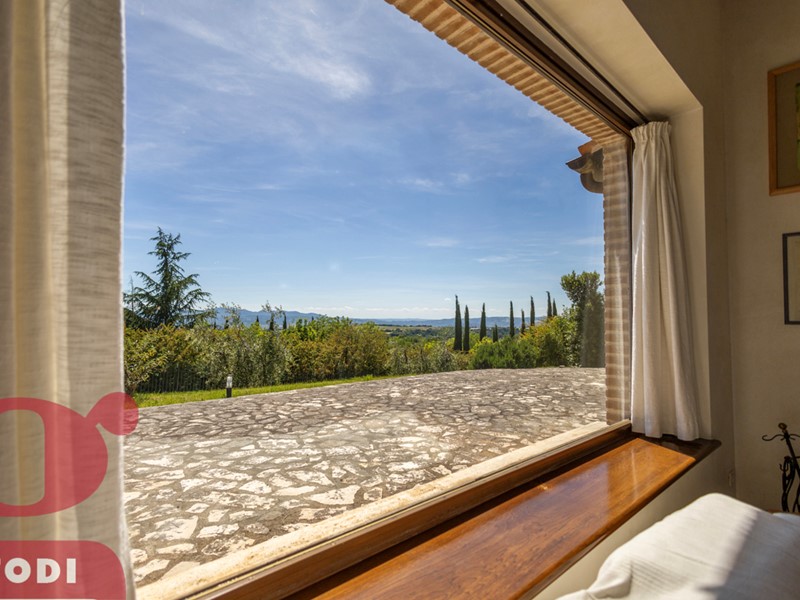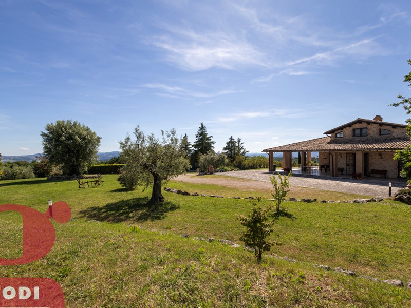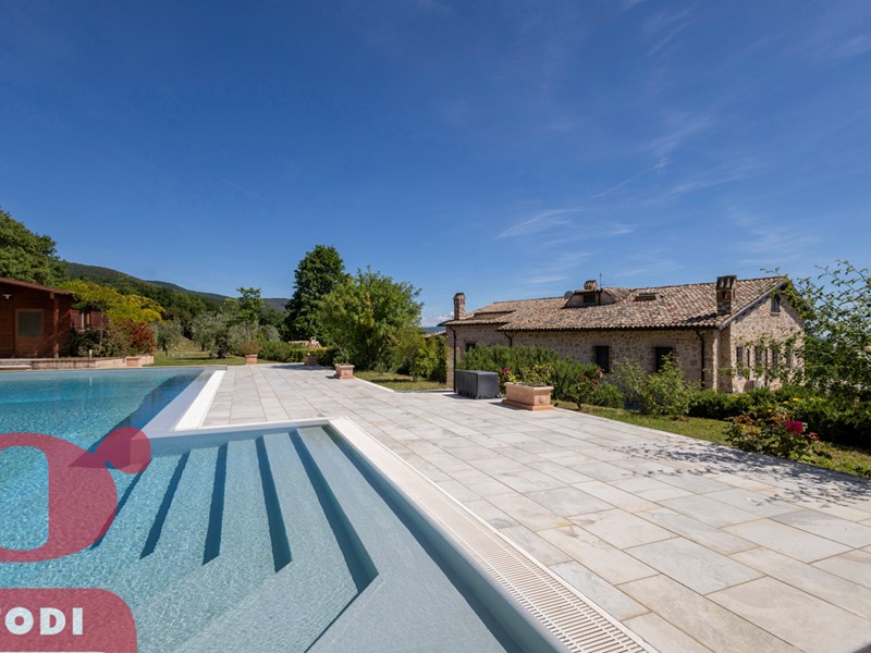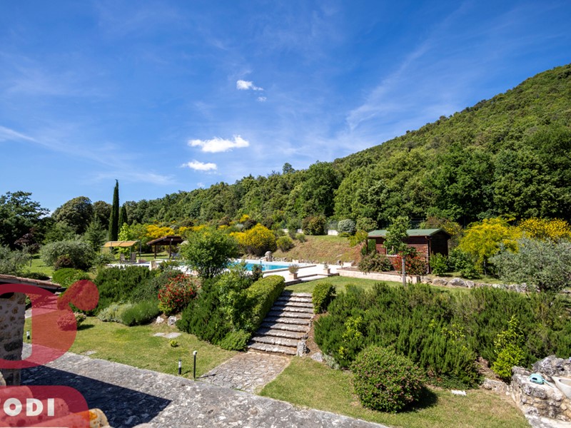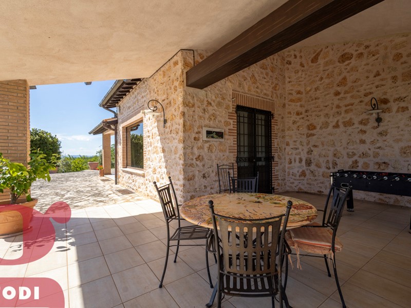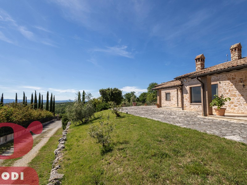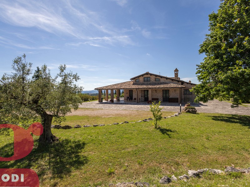 Nelle immediate vicinanze di MASSA MARTANA, situato in posizione tranquilla ma non isolata e con una splendida vista su Todi, questa VILLA in Pietra, cui si accede percorrendo un viale privato oltre un cancello elettrificato in ferro battuto, è disposto su tre livelli, per un totale di 820 mq (516 mq catastali).