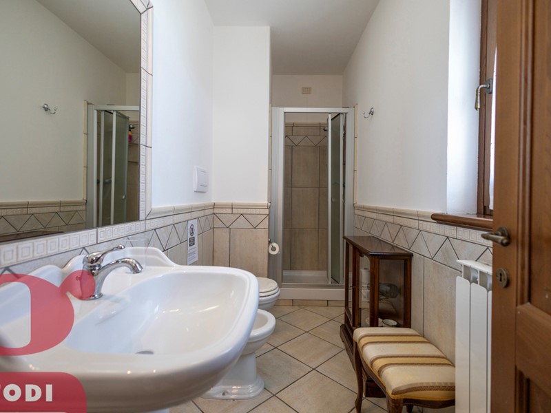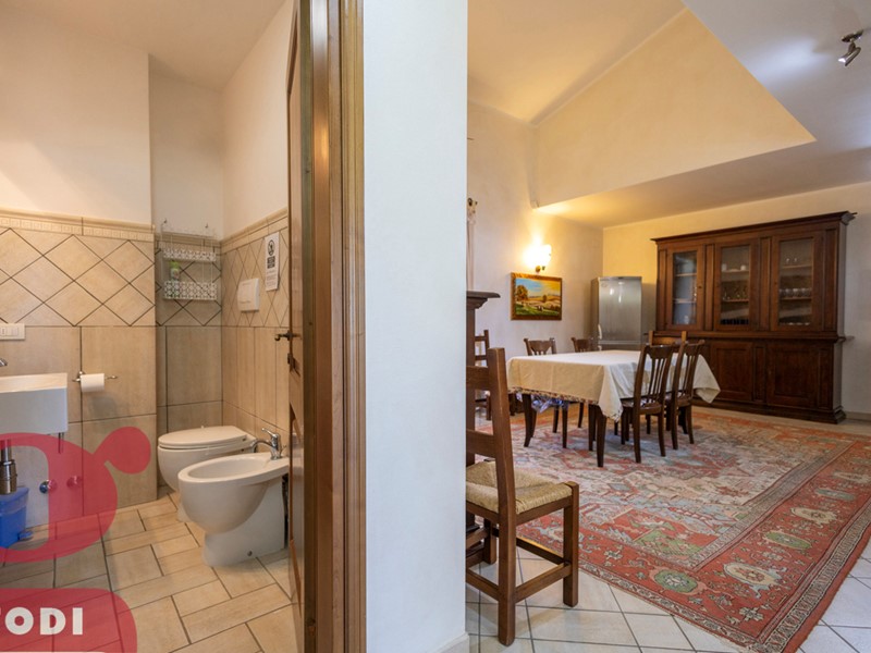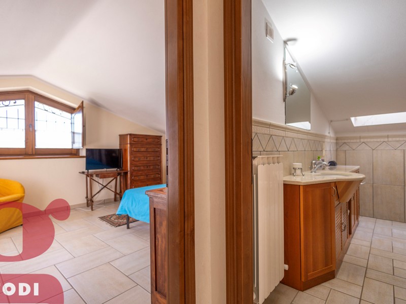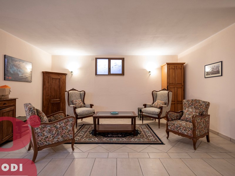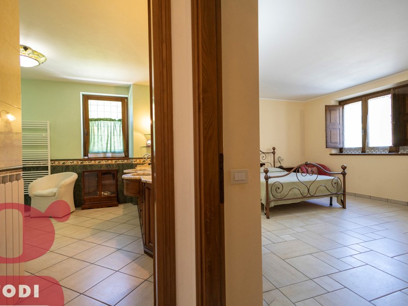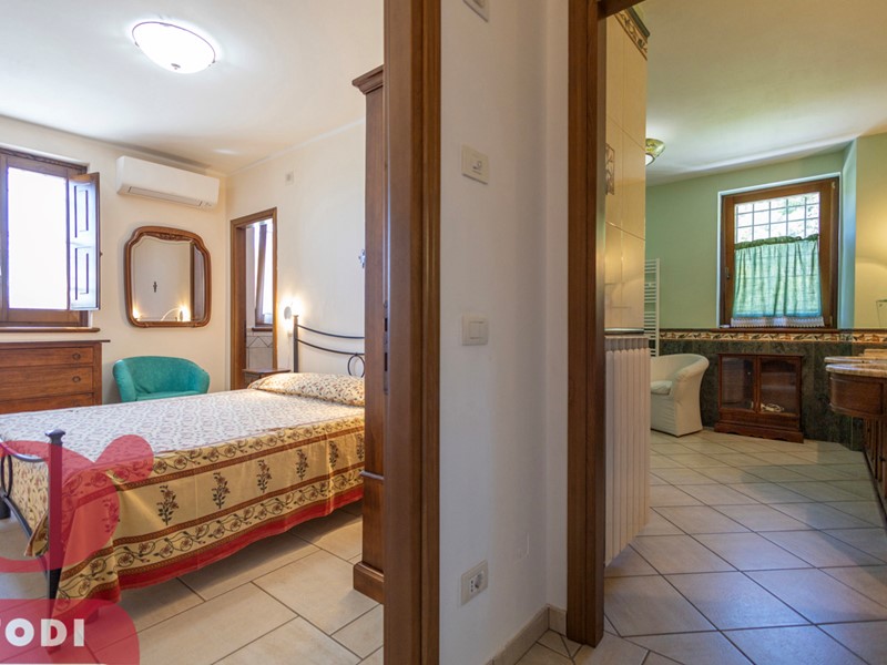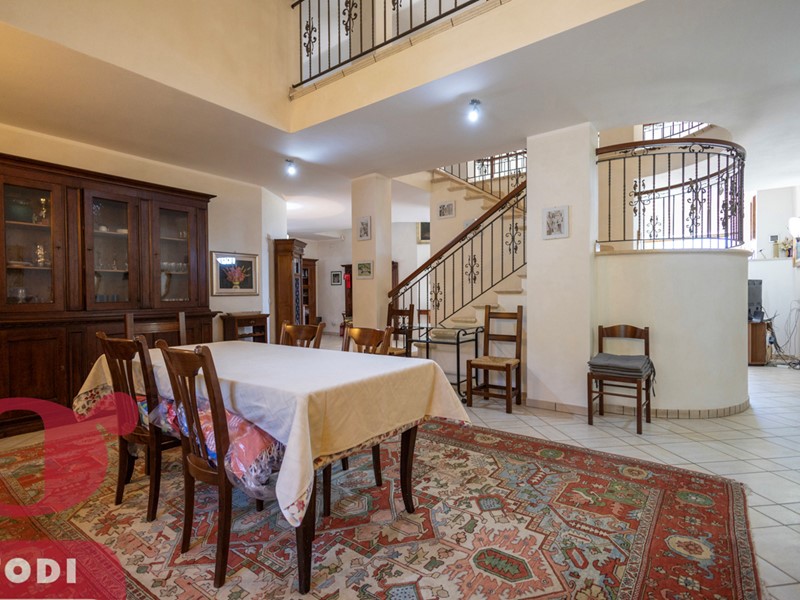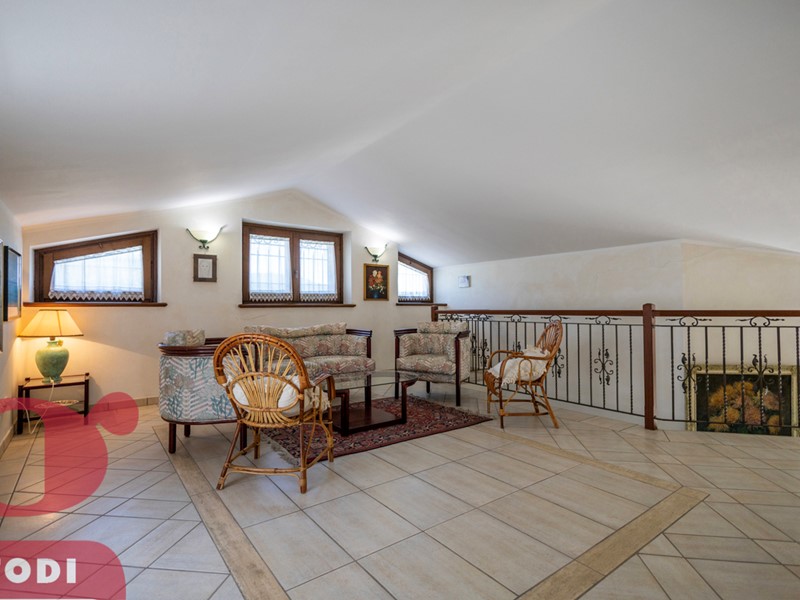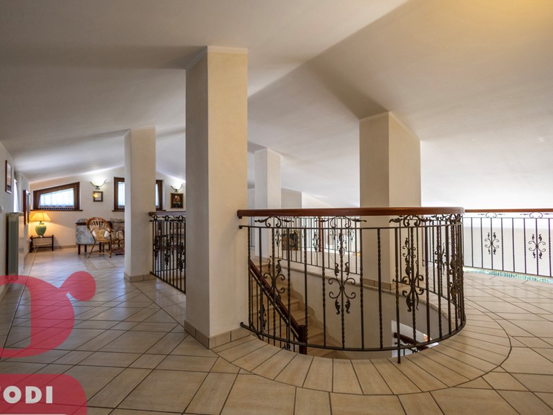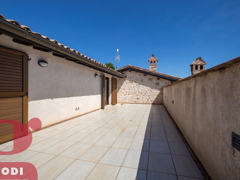 Al primo piano, cui si accede tramite un'imponente e scenografica scala con ringhiera in ferro battuto posta al centro del soggiorno, troviamo una zona hobby mansardata luminosa ed ariosa, resa unica anche dall'effetto "open" che crea l'affascinante ballatoio, naturale prosecuzione della scala e come questa dotato di ringhiera in ferro battuto realizzata da un artigiano locale. Su questo livello ci sono due ulteriori stanze polivalenti da destinare a piacimento all'utilizzo che si preferisce, un ambiente con allacci predisposti per un bagno e due terrazzi: uno di 38 mq che si affaccia su Todi ed uno di 18 mq con vista sulla piscina e sul parco.