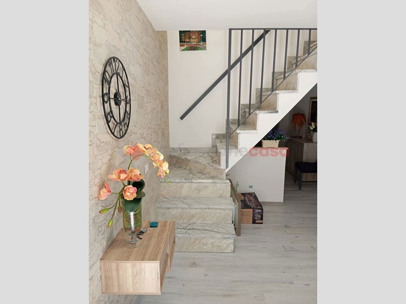 E' composta da; ingresso/disimpegno, angolo cottura, soggiorno con balconcino, al piano 1° da una camera matrimoniale, una cameretta e un servizio con doccia.