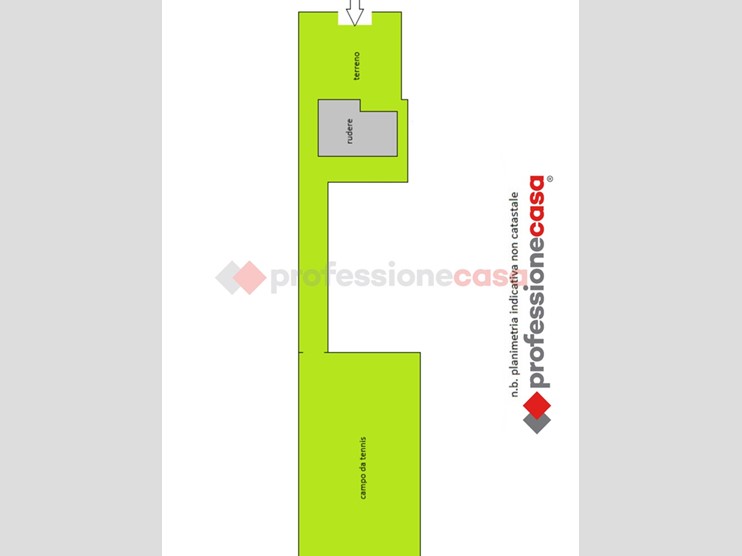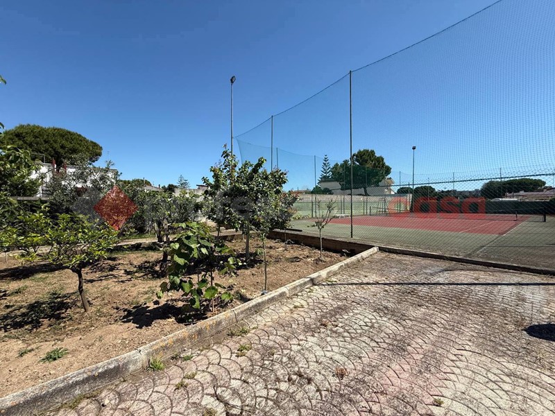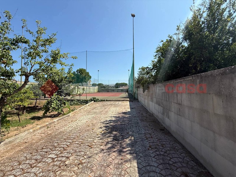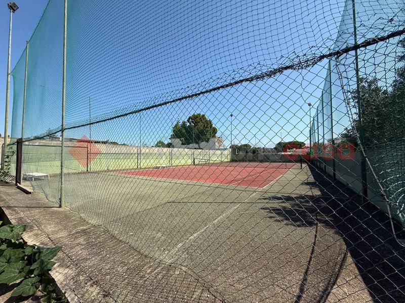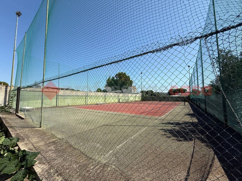 Il terreno circostante è di 383 mq ed in aggiunta c'è una superficie adibita a campo da tennis di 555 mq.