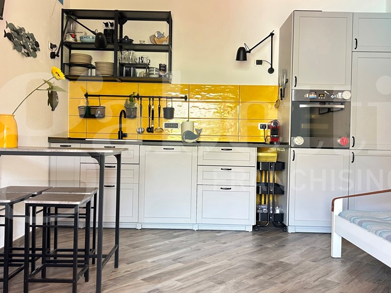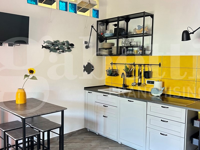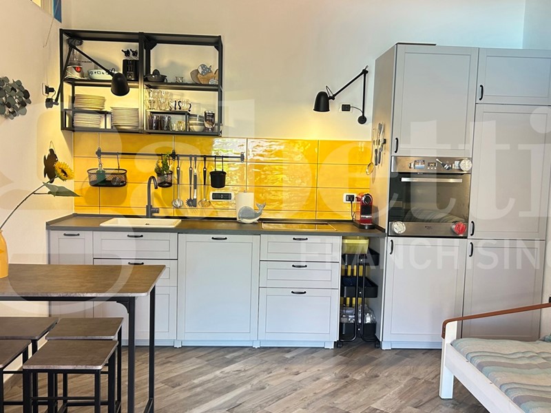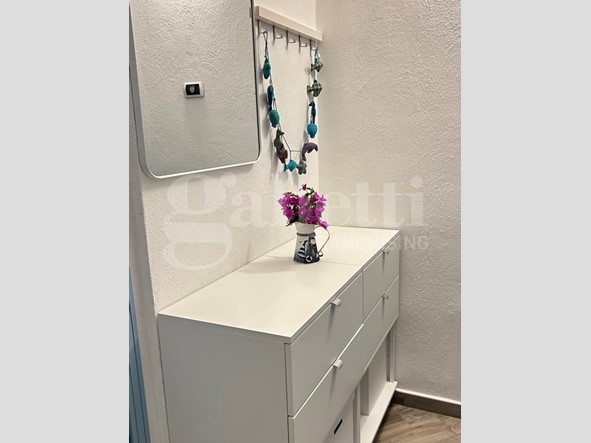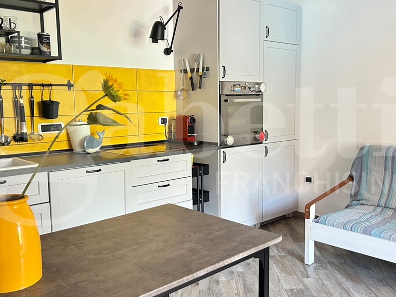 L'interno dell'immobile è stato recentemente ristrutturato con materiali di pregio e un gusto impeccabile. Gli spazi sono ben distribuiti e funzionali: ampio soggiorno con angolo cottura su misura realizzato da artigiani locali, una comoda camera matrimoniale, un disimpegno riservato con letto a scomparsa  -  ideale per ospiti  -  e un bagno elegante, completo e accessoriato. Ogni dettaglio è stato pensato per garantire comfort, praticità e un'elevata qualità della vita.