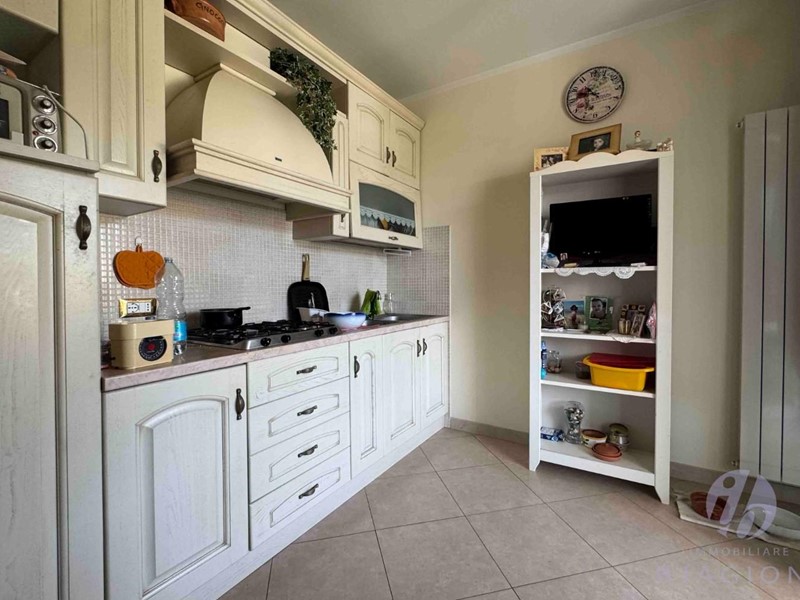 Da un portone laterale si accede al vano scale che disimpegna le due abitazioni, a piano primo abbiamo sala con cottura ed accesso alla terrazza portico, il piano primo è completato da due camere di cui una arredata a singola ma comunque ampia ed una matrimoniale, completa la proprietà una terrazzaportico sul retro ad uso lavanderia. A PT abbiamo sala con cottura ed uscita sulla terrazza portico frontale, tre camere matrimoniali e due bagni finestrati, sul retro ampio giardino con tenda removibile.