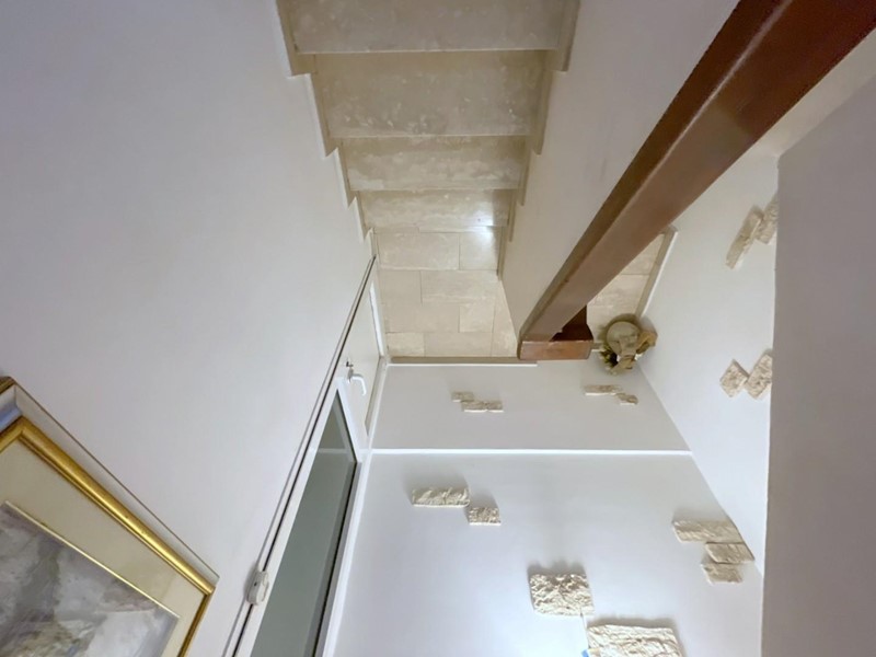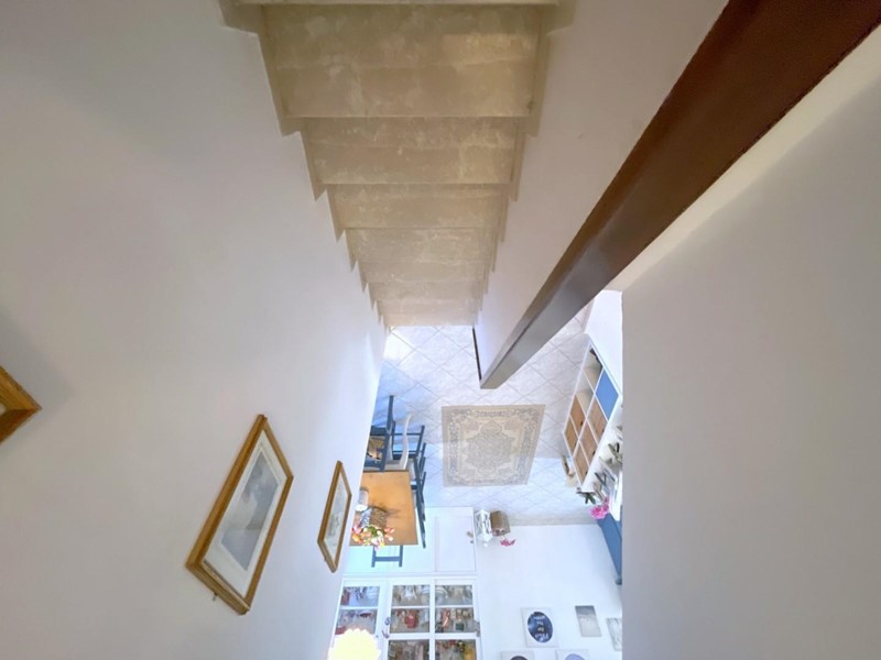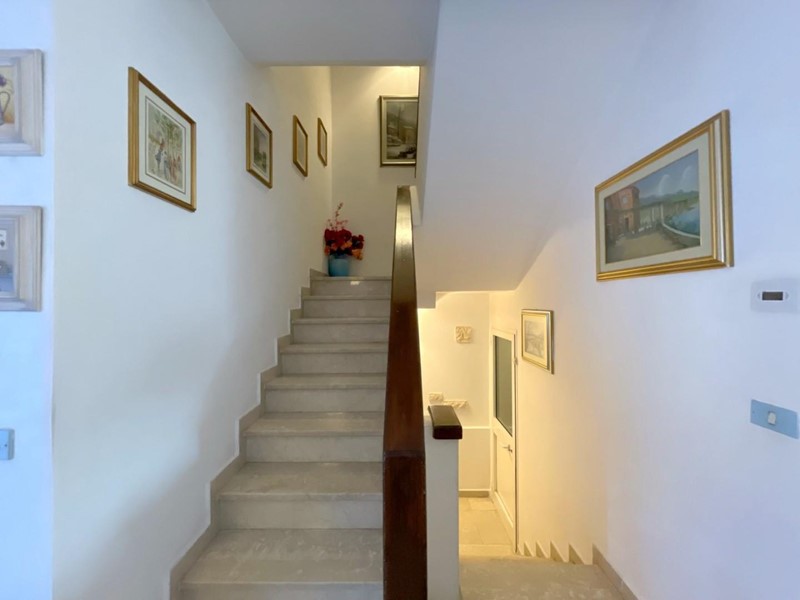 Salendo al primo piano si accede alla zona notte, dove si trovano due camere matrimoniali ampie e luminose e una terza camera doppia. I bagni sono due, uno cieco con doccia ed uno finestrato con vasca. Completano il piano due balconi, accessibili dalle camere.