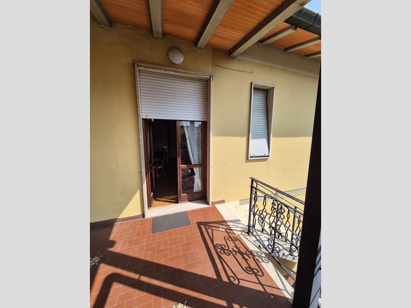 Le unità abitative sono 2, completamente separate fra loro, con ingressi già indipendenti: al piano terra si accede da portone centrale e l'accesso del primo piano avviene da importante scala esterna semicircolare.