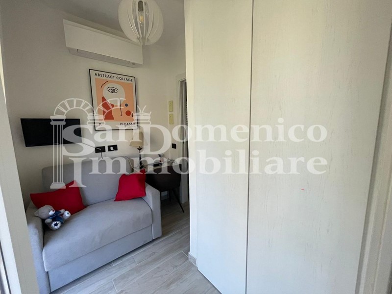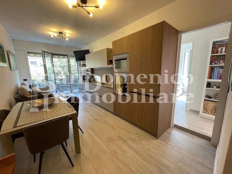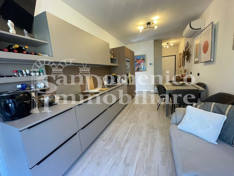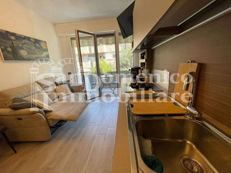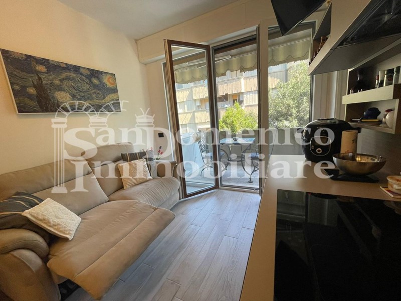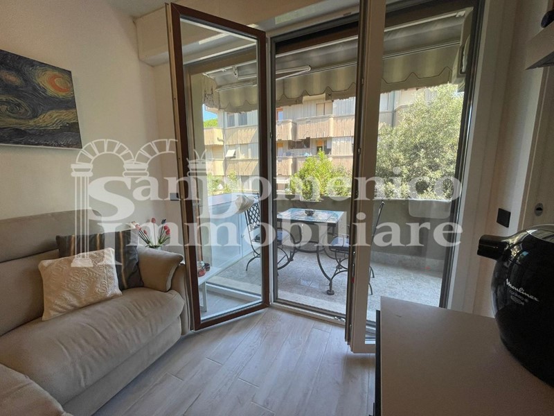 L'ingresso si apre su un disimpegno che conduce a luminoso soggiorno con angolo cottura, uno spazio accogliente e funzionale. Da qui si accede direttamente ad un balcone, ideale per momenti di relax all'aria aperta. L'appartamento dispone di una pratica lavanderia a scomparsa con ulteriore ambiente dove trova posto un comodo divano letto, affiancato da un bagno di servizio.
