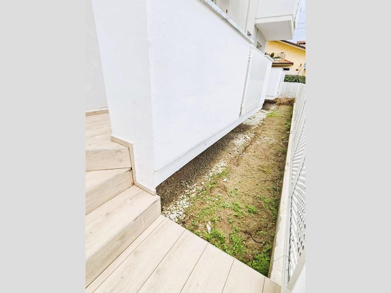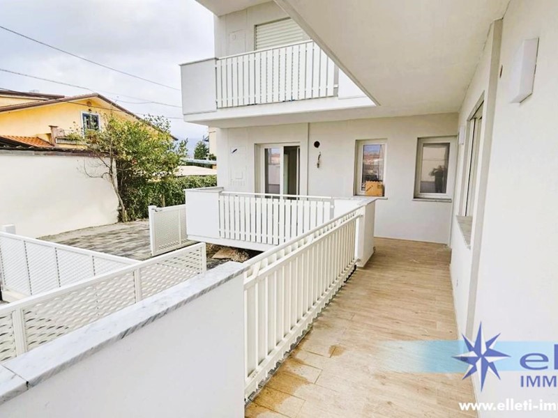 Marina di Massa Loc. Ricortola – A soli 200 mt dal mare ed a circa 1 Km dal centro, si vende in Esclusiva Ultimo Appartamento disponibile di nuova fattura all’interno di signorile contesto appena ultimato con finiture di pregio; posto al piano rialzato si compone di: ingresso su ampio e luminoso soggiorno, cucina, ripostiglio, tre camere da letto di cui due cui due dotate di bagno interno, stanza armadi, altro bagno di servizio, balcone e due terrazzi accessibili dalle camere che portano alla corte esterna piastrellata ed al posto auto privato. L’immobile ottimamente rifinito è dotato di pavimenti in gres porcellanato effetto legno 120x20, riscaldamento a soffitto, serramenti Griesser in metallo per una schermatura Totale o parziale ad inclinazione regolabile etc., videocitofono e predisposizione climatizzazione.