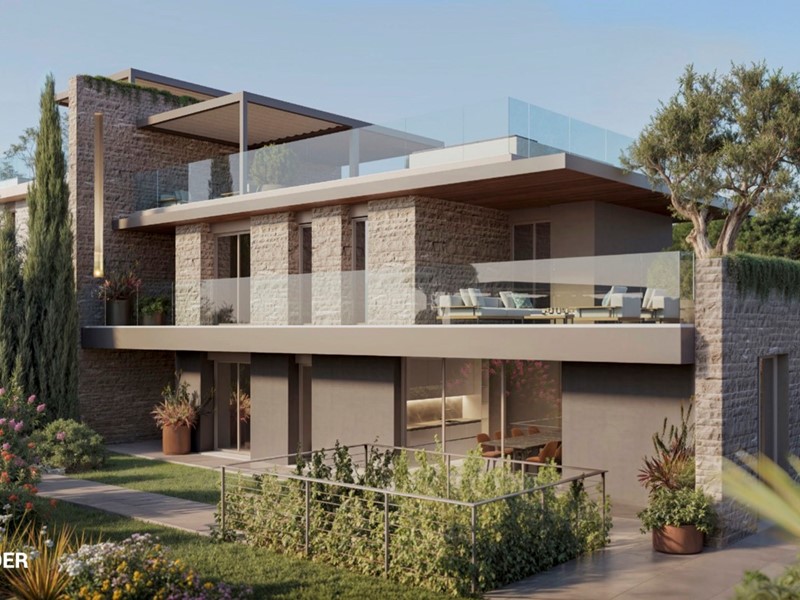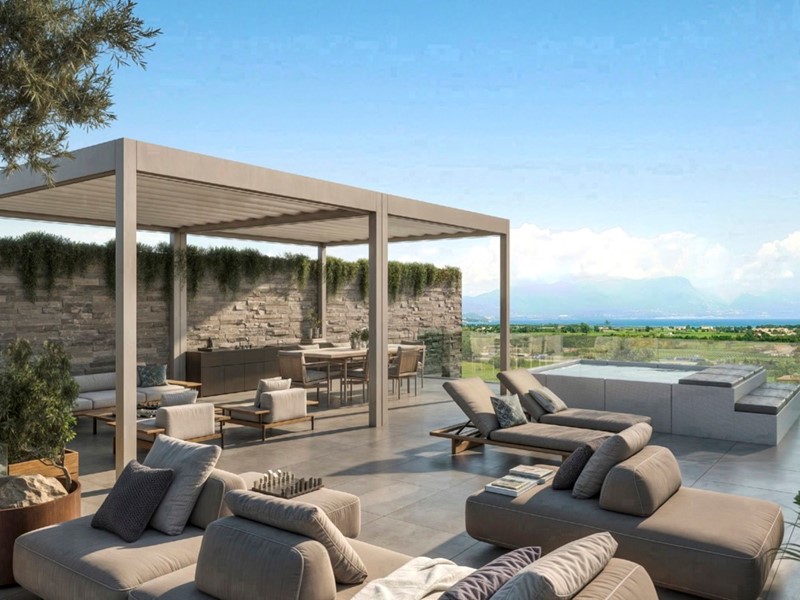 L'ingresso conduce ad un luminoso living open space dal doppio affaccio dove le ampie vetrate panoramiche si aprono verso il giardino ed il Lago di Garda, l'ambiente include la zona cucina predisposta per una soluzione personalizzata secondo le proprie esigenze, dal living si accede direttamente alla master suite, una raffinata camera padronale con bagno privato e spaziosa cabina armadio, affacciata sul giardino privato, una scala conduce al piano primo dove si sviluppa la zona notte composta da una camera da letto con bagno privato e da una seconda master-suite completa di bagno privato e cabina armadio, a circondare il primo piano di Villa Ander una grande terrazza panoramica vista lago per godere della luce e del paesaggio circostante, dalla terrazza una elegante scala privata porta alla spettacolare zona sundeck, un vero e proprio giardino pensile con mini piscina, pergola ventilata e predisposizione per una cucina esterna , uno spazio esclusivo dove vivere momenti di comfort in assoluta privacy con vista incantevole sul Lago di Garda.