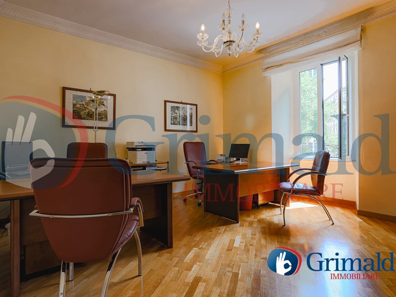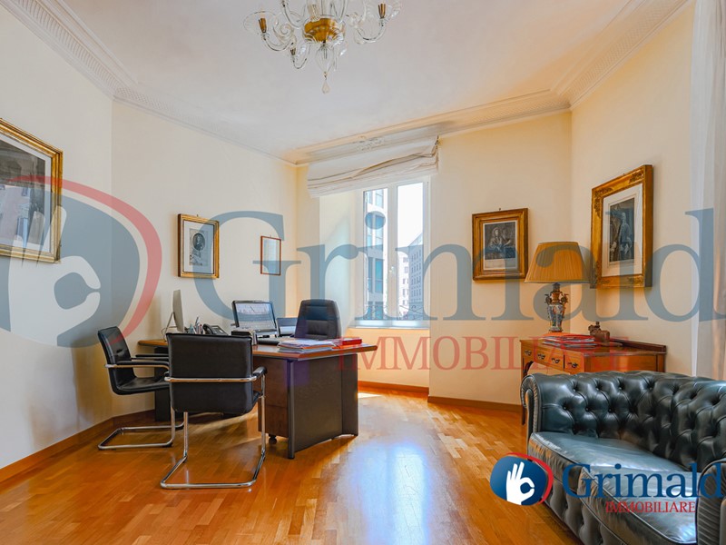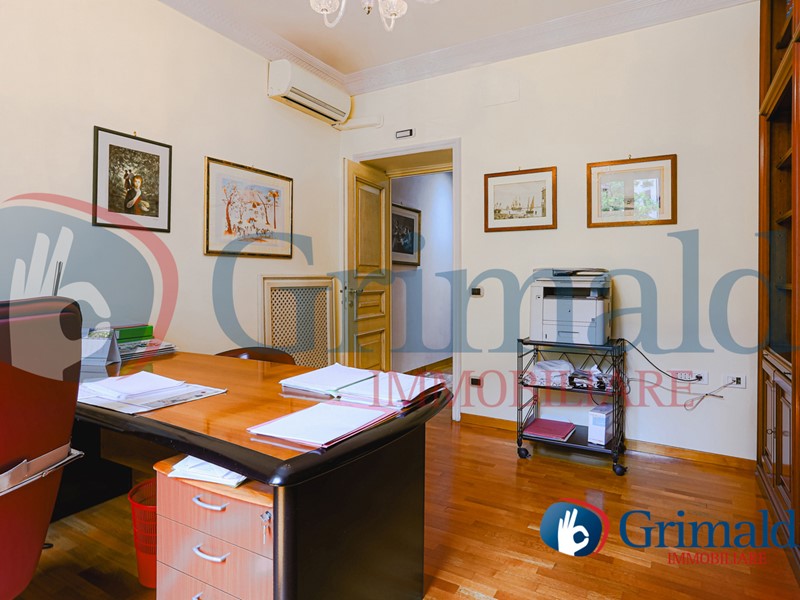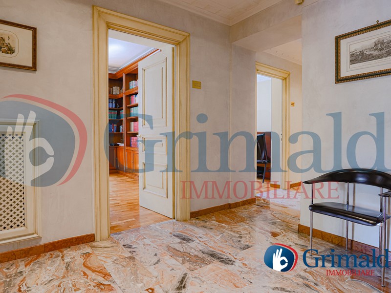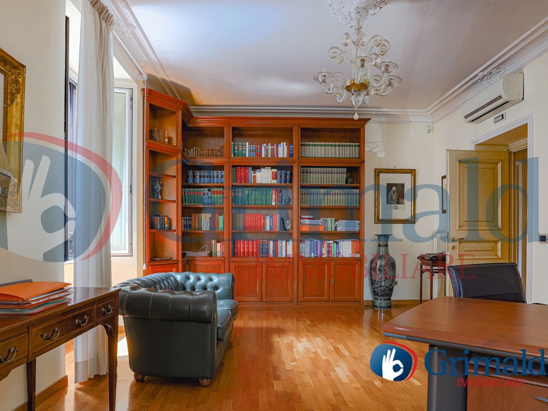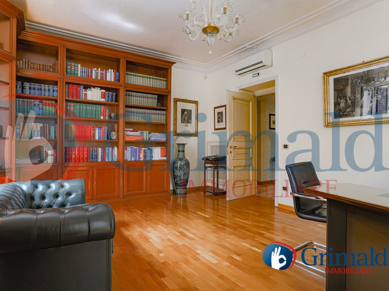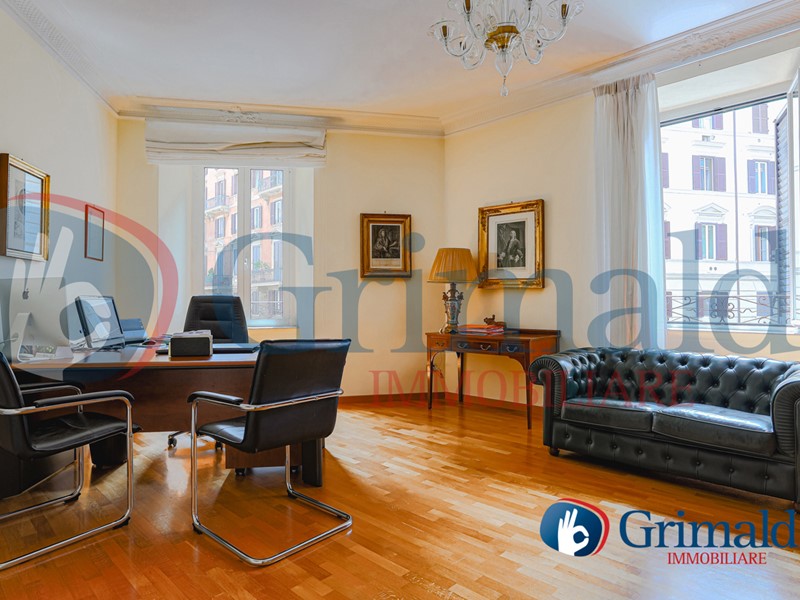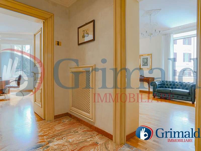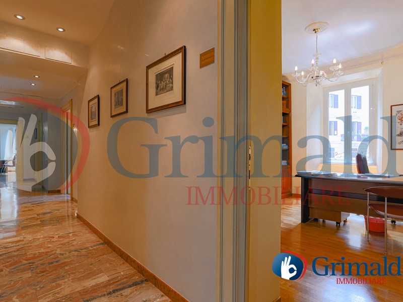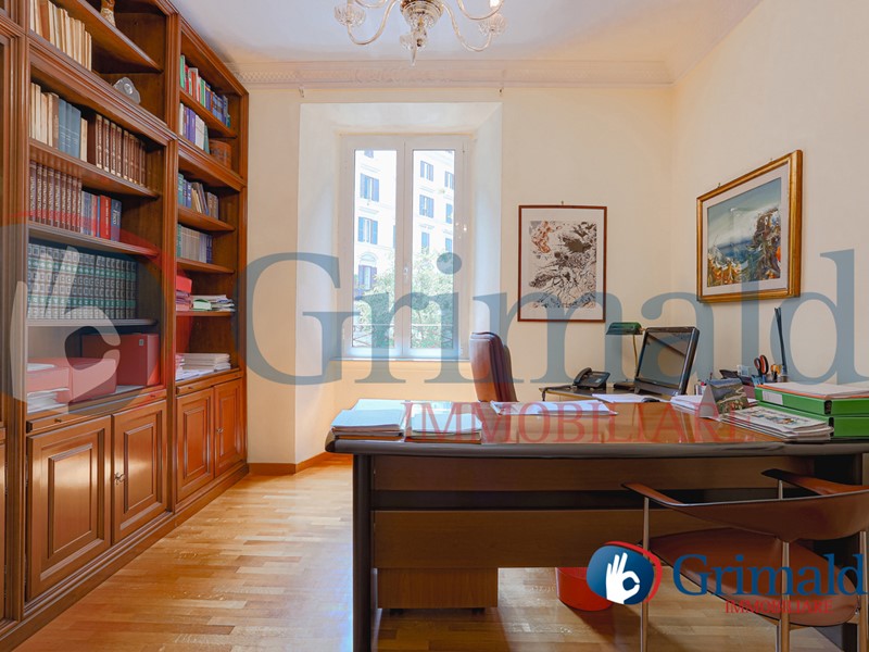 C'è una piazza nel cuore del quartiere Prati, forse una tra le più importanti di Roma, dedicata allo statista piemontese Camillo Benso, Conte di Cavour. Questo luogo, che ora si chiama Piazza Cavour, è anche noto perché ci si affacciano la chiesa Evangelica Valdese, il Palazzo De Parente di Gaetano Koch, il Cinema Adriano e anche un lato del Palazzaccio, imponente opera dell'architetto Guglielmo Calderini realizzata negli anni 1889-1910 e sede della Suprema Corte di Cassazione. Questa piazza è importante anche a livello logistico, in quanto a pochi passi dalla stessa si trovano due ponti che collegano il quartiere Prati con il centro storico, nonché importanti strade di collegamento come Via Crescenzio, Via Cicerone e Via Vittoria Colonna. A ridosso della piazza troviamo una via che la collega con Piazza della Libertà (Via Cola di Rienzo). Ed è proprio in questa interessante e strategica strada che l'agenzia immobiliare Grimaldi Roma Prati è lieta di proporVi un'appartamento di ampia metratura, sito in uno stabile signorile dotato di servizio di portineria l'intera giornata, ubicato al primo piano, che si sviluppa su una superficie catastale di 204 mq. Questa dimora è composta da ampio ingresso, sei camere spaziose, una cucina attualmente adibita a camera, due bagni e terrazzino. L'appartamento gode di un'esposizione sia interna che esterna angolare, garantendo una distribuzione ottimale della luce naturale e una gradevole vivibilità, donando ad ogni ambiente un'atmosfera elegante e armoniosa. Nel momento in cui si accede all'immobile ci ospita un ampio ingresso che funge, in caso di uso come studio, da confortevole reception e già si percepisce con quale sobrietà ed eleganza è stata ristrutturata questa proprietà. Subito a sinistra, andando in senso orario, troviamo la prima camera. A ridosso di questo primo ambiente, troviamo una zona che può essere adibita a salone o sala riunioni, che ha la peculiarità di avere due finestre angolari ed un ottimo riscontro di luce e di aria. Da qui inizia un lungo corridoio che ci accompagna nella zona notte della proprietà o, comunque, in caso di uso studio, in altri ambienti operativi. Sempre in senso orario, troviamo due camere con affaccio esterno, poi le restanti due camere e la cucina, con affaccio interno. Particolarità di una delle camere, nella fattispecie quella attigua alla cucina, è l'accesso a una loggia (terrazzino) di circa 6 mq. L'immobile risulta ristrutturato. Il prezzo di richiesta è di ? 1320000