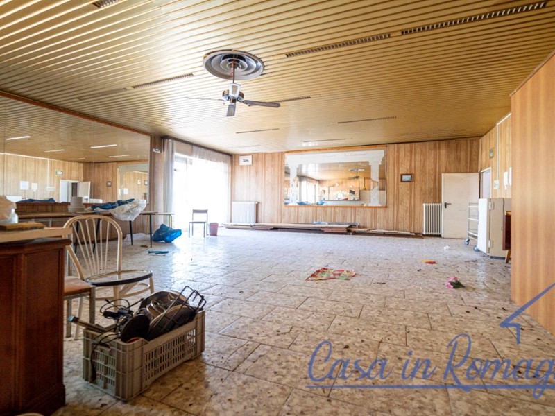DIOLAGUARDIA: Sulle colline romagnole interessante proprietà composta da un grande fabbricato tutto disposto al piano terreno e destinato a bar, ristorante e sala da ballo. Quasi 600 mq. di immobile suddivisi in due blocchi principali distinti: 260 mq. circa ospitano la sala ristorante, il bar, tre stanze a deposito e dispensa, una stanza a laboratorio, le cucine e i bagni. La seconda parte misura oltre 300 mq. ed è composta da un unico ambiente destinato a sala danze con i propri bagni. Davvero grande anche l'area esterna: circa 5300 mq. che circondano il fabbricato, in parte a parcheggi ed in parte ideale per essere valorizzata nella bella stagione con attrazioni varie e posti a tavola all'aperto. La proprietà si completa poi di ulteriori 3000 mq. circa di terreno adiacente all'area del ristorante, dotato di potenzialità edificatorie ad uso residenziale. € 300.000,00 Rif. I156 Ape in fase di conteggio info Andreas 335.5738615
