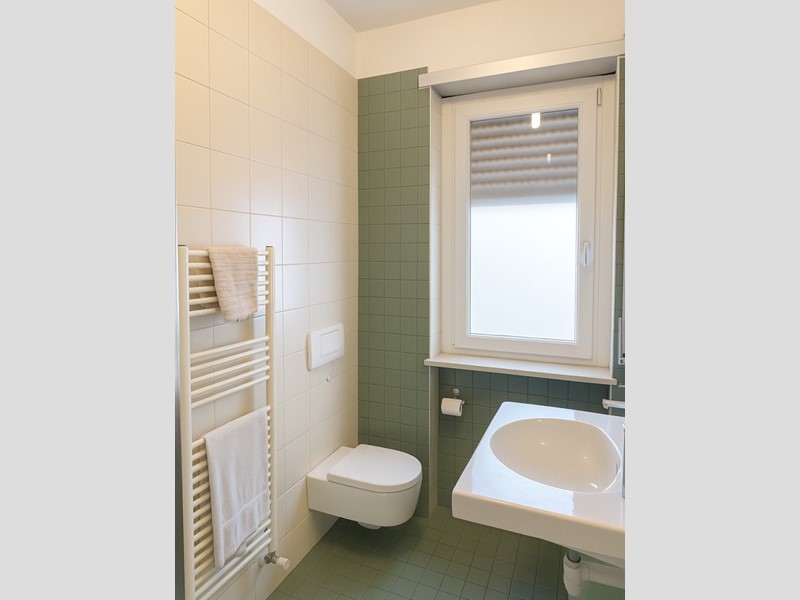 primo piano: due camere matrimoniali, una camera singola, tutte dotate di terrazzo proprio, un bagno con doppio lavandino e vasca da bagno;