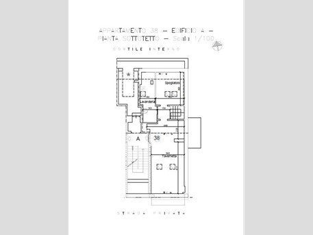 La planimetria presente in questa scheda è una “planimetria tipo”, i piani in cui è inserito questo appartamento libero su tre lati, bilivello in vendita sono il sesto ed il settimo, la sua composizione è la seguente: ingresso living su soggiorno con zona cucina a vista, delimitata da pareti, per un totale di circa 28 metri quadri, disimpegno, una camera, un bagno, terrazzino lato soggiorno e due balconi lato interno (superficie commerciale di questo piano circa 89 mq); scala interna per accesso al settimo piano su ampio sottotetto di circa 67 mq, e con altezza al colmo di circa 4 metri, diviso in due ambienti, definiti spogliatoio e tavernetta, oltre grande locale lavanderia (è presente l'accesso a questo piano anche dal pianerottolo).