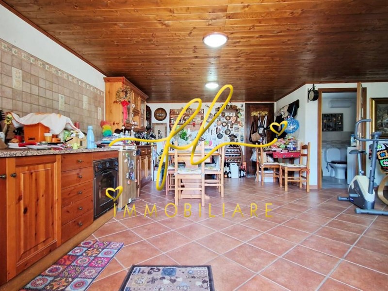 Al piano terra (rialzato) troviamo la sala con camino e balcone panoramico,  la cucina ed un ripostiglio.