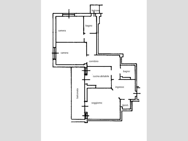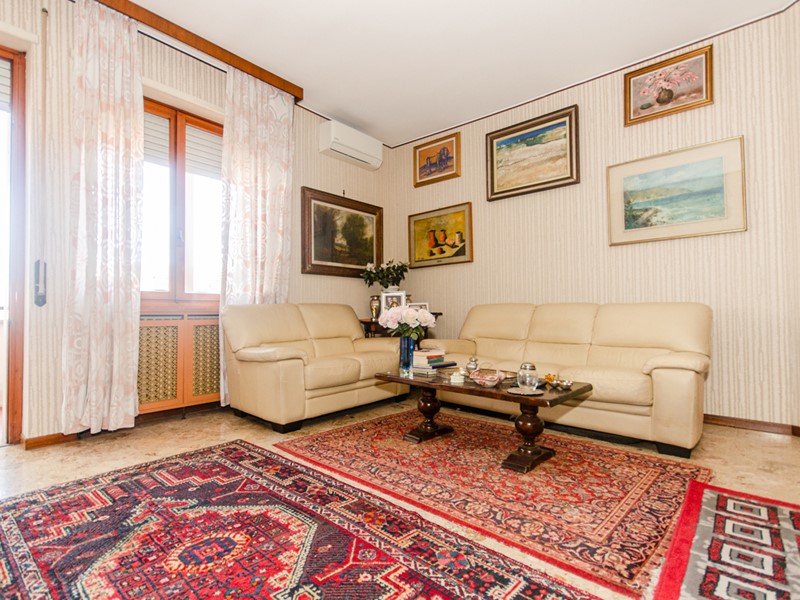 L'appartamento è composto da : ingresso, soggiorno con accesso alla balconata di 11 metri, due camere, due bagni, cucina abitabile, ripostiglio e cantina.