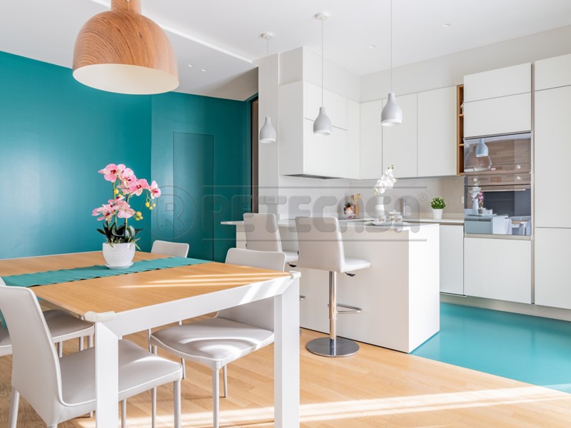Qui, il design moderno e le finiture di pregio si fondono armoniosamente, creando uno spazio conviviale, perfetto per ospitare cene con gli amici o per concedersi momenti di tranquillità.