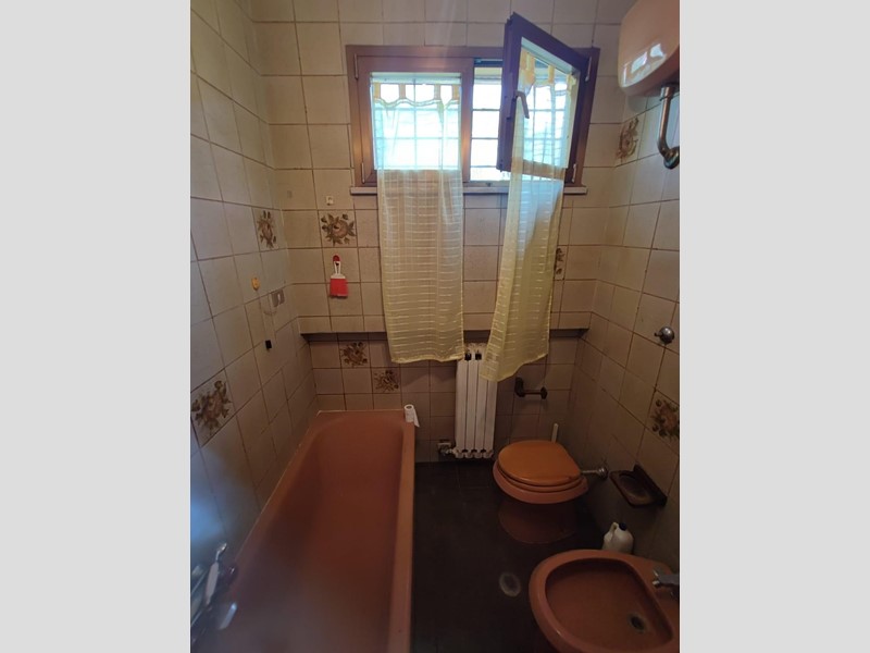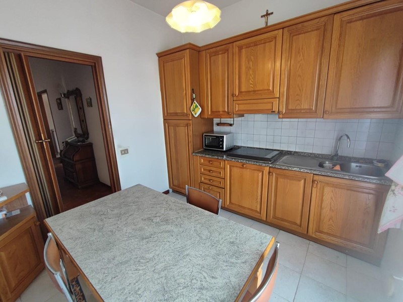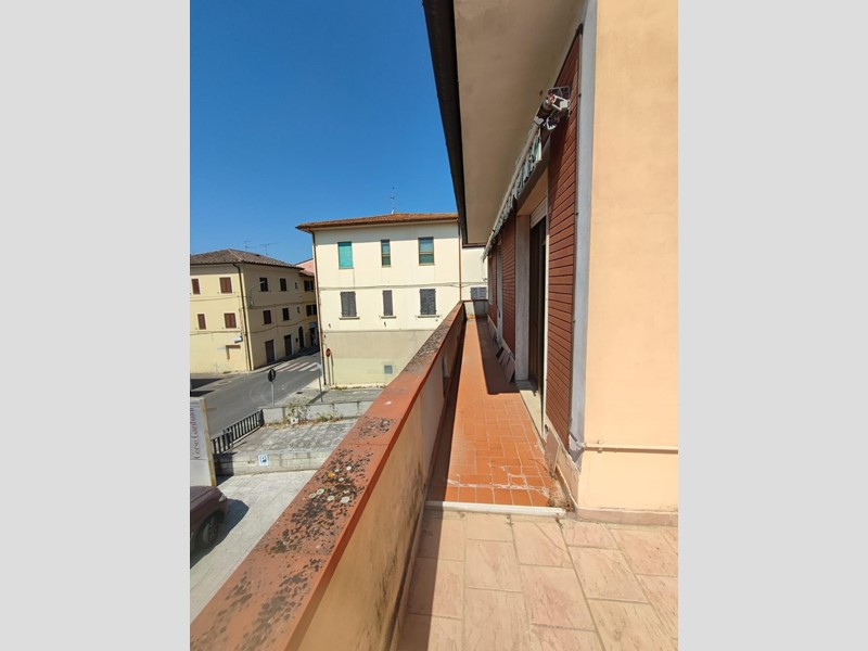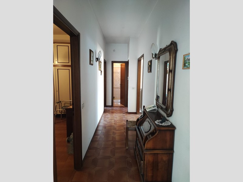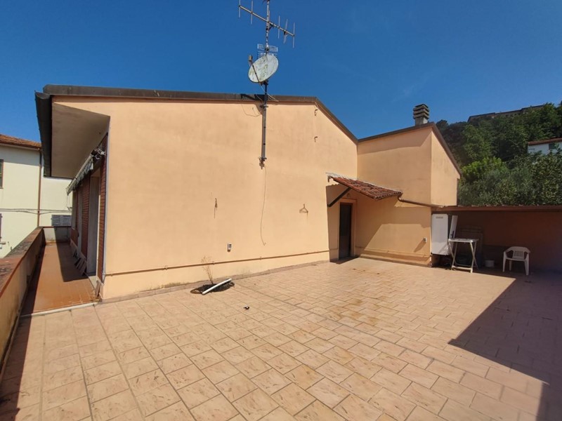 FORCOLI - In posizione centrale grande appartamento in buono stato posto al primo e ultimo piano di palazzina di due piani. L'appartamento ha ingresso indipendente ed è libero su 4 lati. L'accesso avviene al piano terra da piccolo resede esclusivo attraverso un ingresso di mq. 40 con ripostiglio, scale interne per arrivare all'appartamento composto di: ingresso, soggiorno, cucina abitabile, disimpegno notte, due camere matrimoniali, cameretta, bagno con vasca e bagno di sola doccia. Dal disimpegno e dalle stanze dell'appartamento si accede ad una meravigliosa terrazza di mq. 100 che contorna su tre lati l'immobile. Immobile interessante per la posizione entrale e per la grande terrazza abitabile.