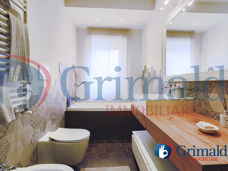 Proseguendo lungo il corridoio, si accede alla zona notte. Subito a destra troviamo un bagno moderno e funzionale, completo di una comoda vasca.