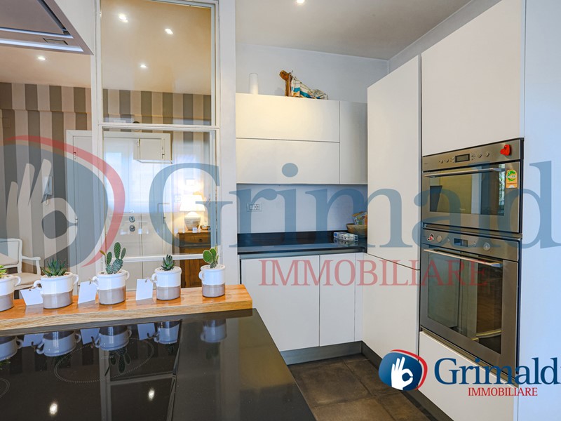 Dotata di una moderna isola centrale che ne esalta funzionalità e stile, questa cucina è il cuore conviviale dell'abitazione, accessibile comodamente sia dall'ingresso che direttamente dal salone.