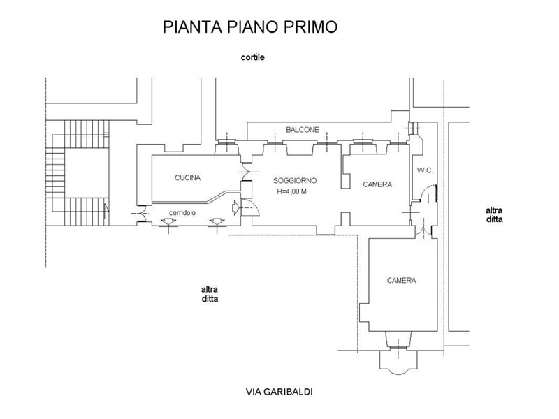 L'immobile in buono stato, si sviluppa su quattro vani: ingresso living su ampio open space, cucina abitabile, salotto, camera da letto, bagno, 2 balconi (di proprietà no ballatoio).