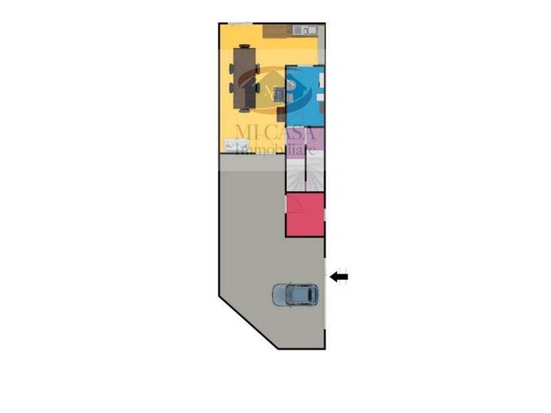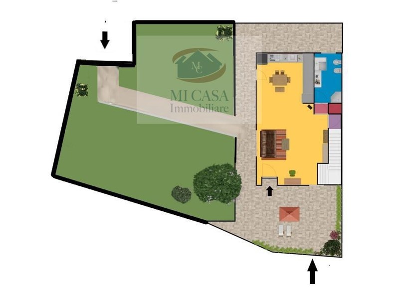 - al piano terreno: ampia zona giorno con cucina , disimpegno e bagno,