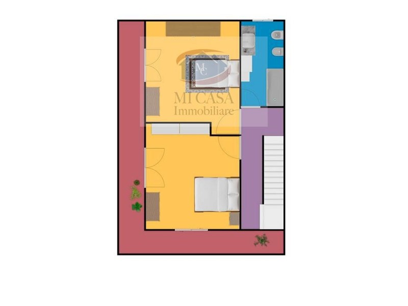 - al primo piano: due camere da letto con annesso un balcone angolare e un comodo bagno,