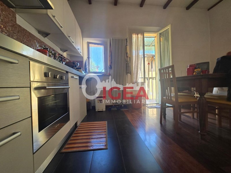 Una cucina abitabile con balcone, pensata per momenti conviviali e cene in compagnia