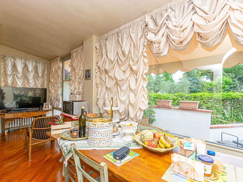 Il reparto giorno si completa di una veranda con infissi in vetro, collegata sia alla cucina che alla sala da pranzo.