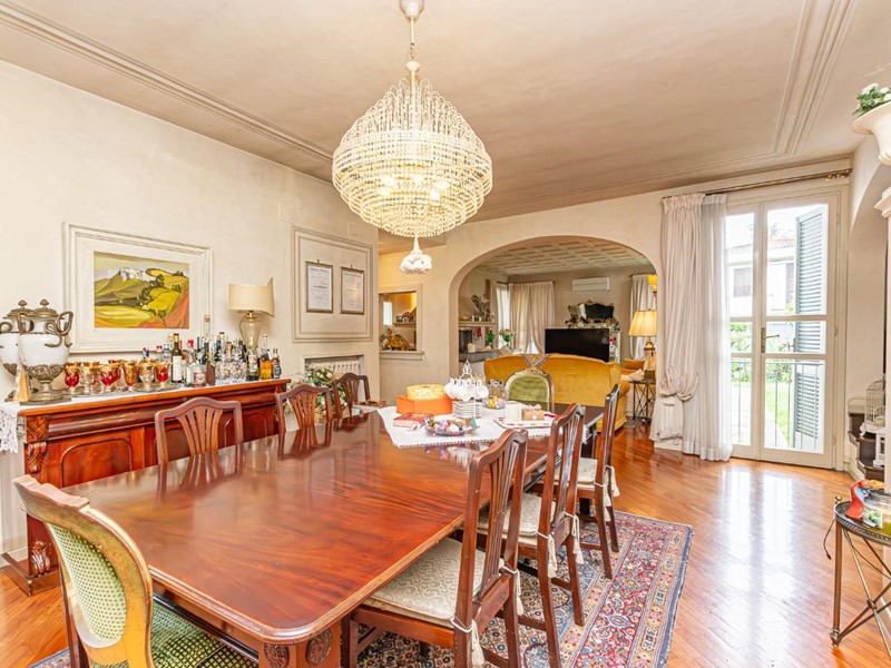Entrando a piano terreno, l’ingresso apre la vista su un'ampia e luminosa zona living, con uno splendido camino che ne fa da padrone, oltre all'adiacente sala da pranzo, e alla cucina separata.