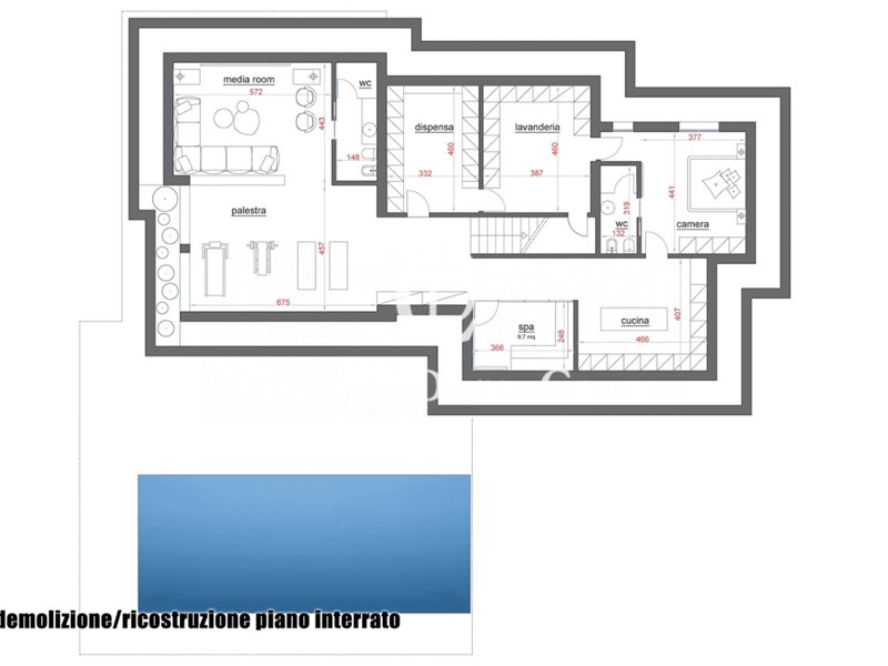 • 150 mq al piano interrato, destinati ad aree di servizio, ospitalità e benessere