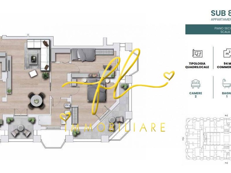 All’interno di un condominio recentemente rinnovato, sia nelle parti interne che esterne, dotato di ascensore e servizio di portierato, proponiamo in vendita un elegante appartamento di circa 100 mq, situato al secondo piano (scala D, sub 854)