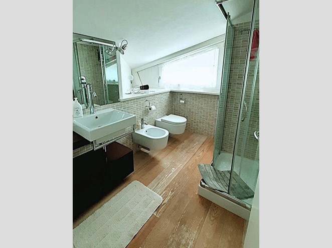 I due terrazzi panoramici di circa 27 mq ciascuno permettono di godere di una vista spettacolare su tutto il paese e sull'arco alpino e di uno spazio esterno soleggiato in tutte le ore del giorno.