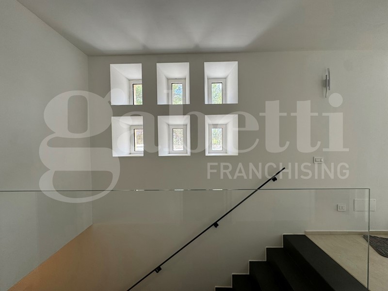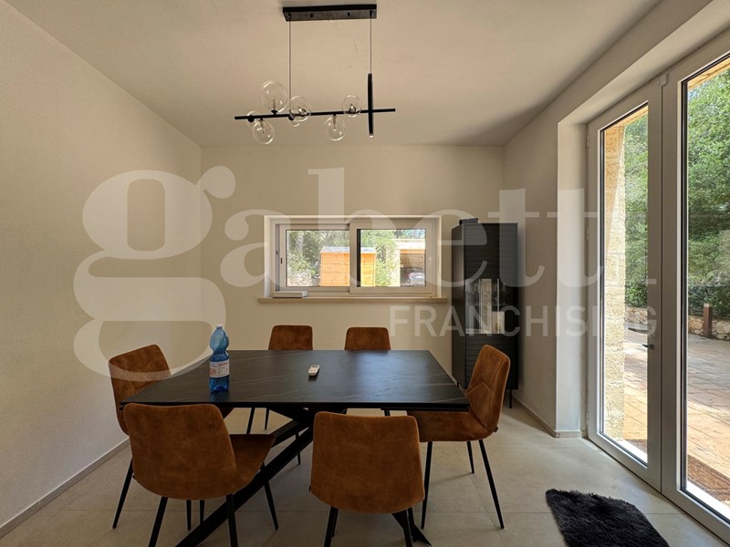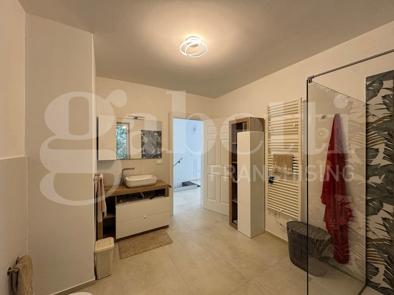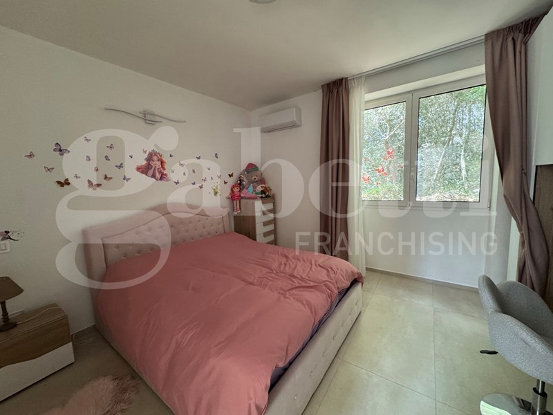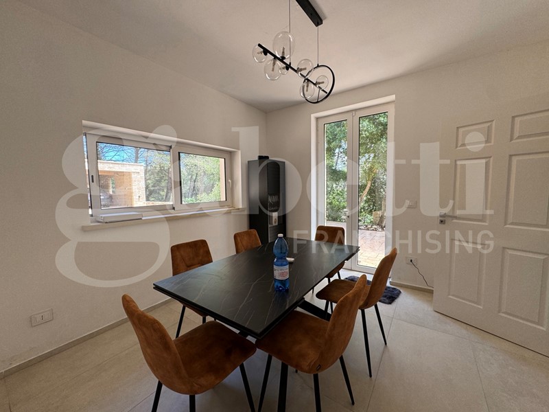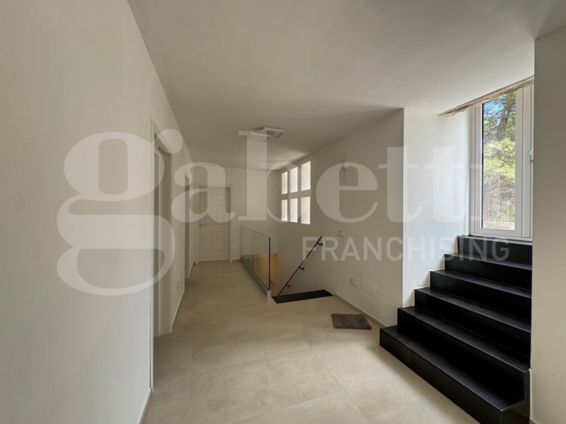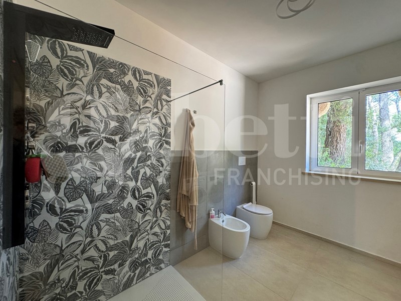 I serramenti in PVC assicurano un'ottima coibentazione termica e acustica, mentre le telecamere perimetrali e l'impianto di antifurto garantiscono la massima sicurezza per te e i tuoi cari. Il giardino circostante, arricchito da un suggestivo bosco, offre uno spazio verde dove rilassarsi e godere della bellezza della natura. Dalle stanze da letto si gode del verde panorama del bosco che circonda la casa