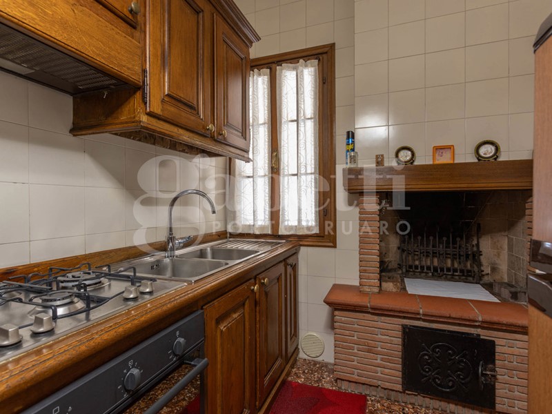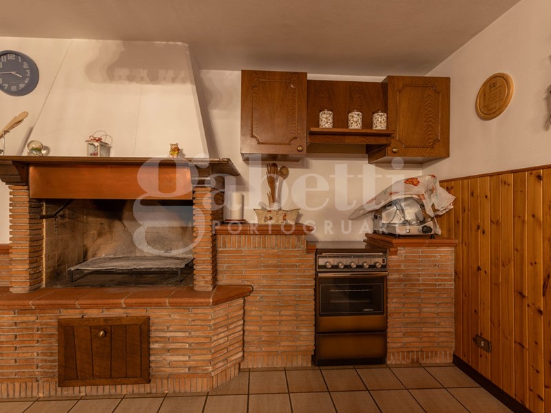 Al piano terra si accede attraverso un suggestivo porticato che introduce all'abitazione principale: un'area giorno raffinata con splendidi pavimenti in marmo, composta da un accogliente soggiorno, sala da pranzo e una cucina separata con camino a legna, ideale per creare un'atmosfera calda e conviviale.