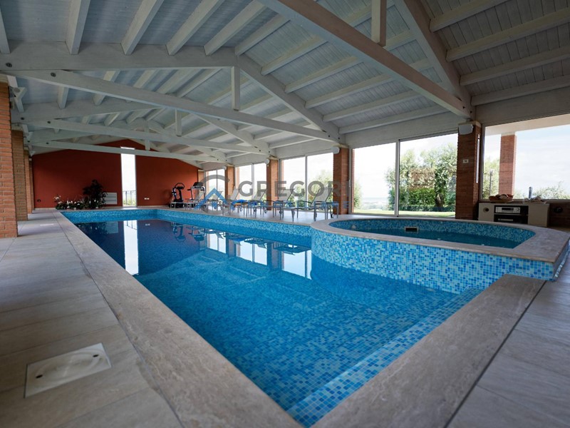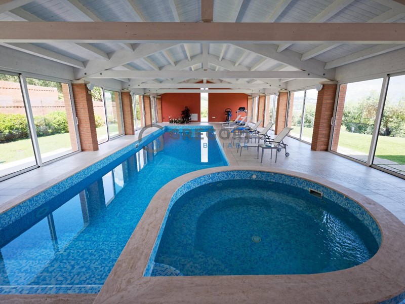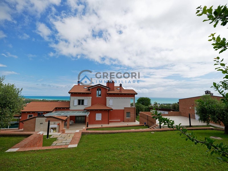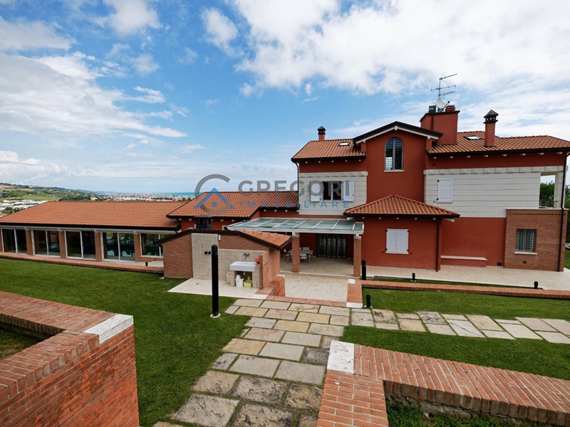 La villa in vendita a poca distanza dal lungomare di Giulianova offre un'incantevole vista mare ed una piscina coperta e riscaldata.