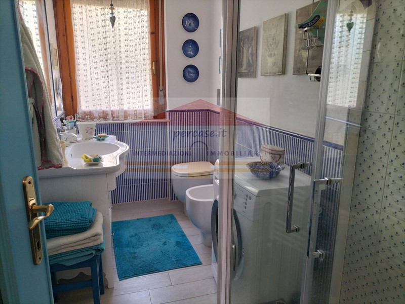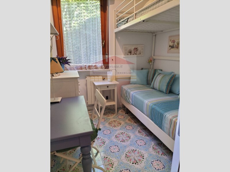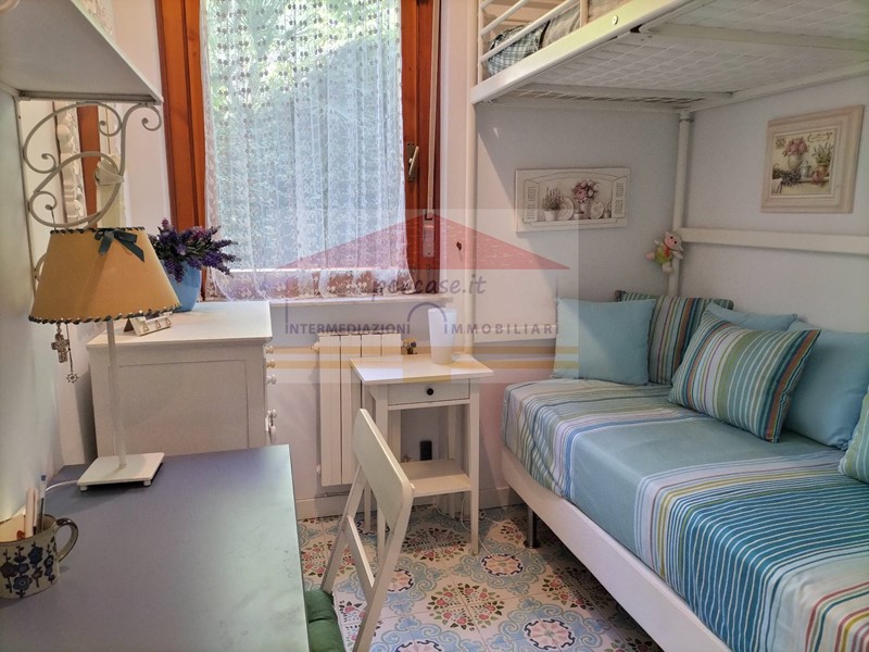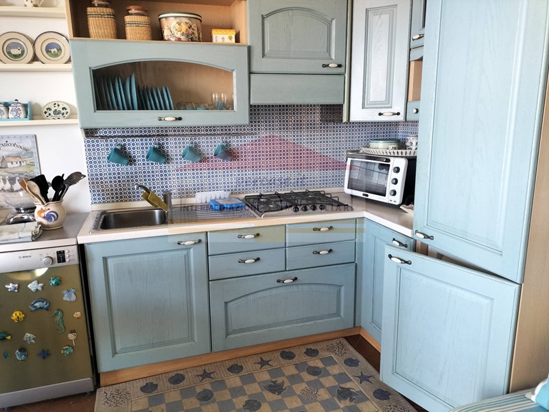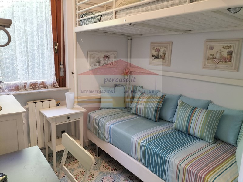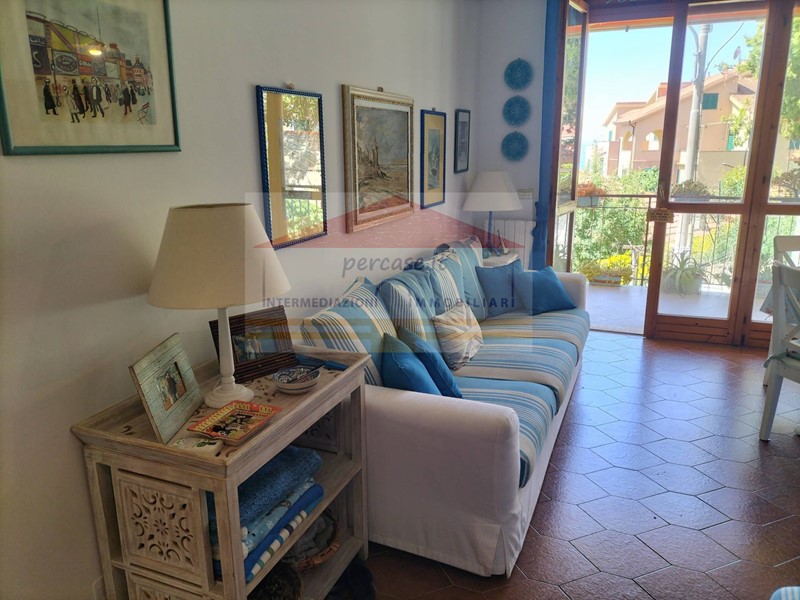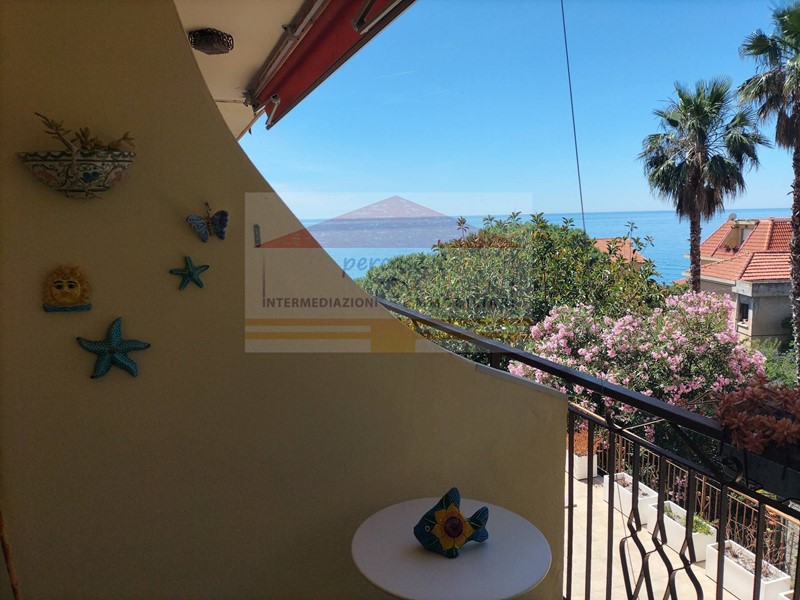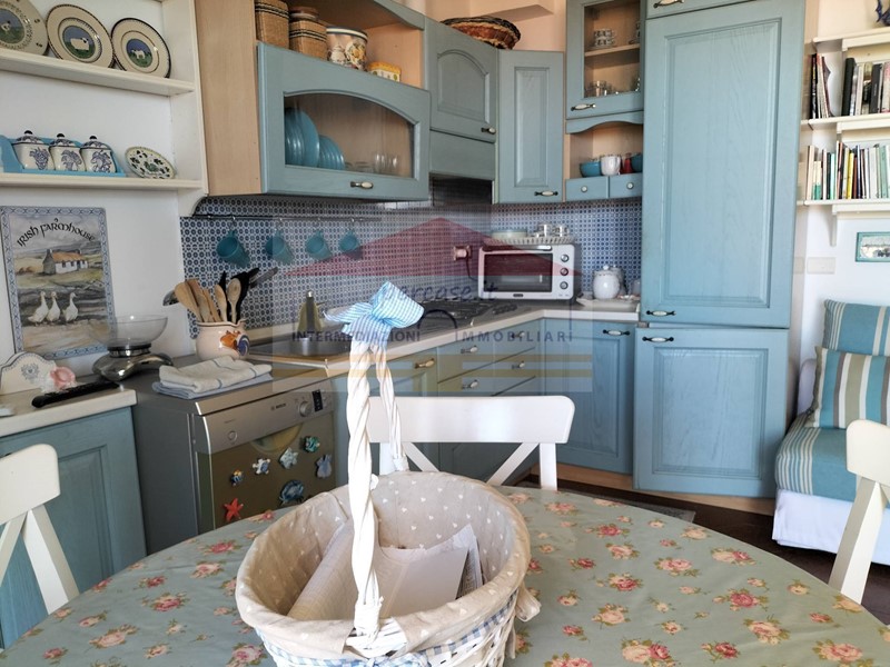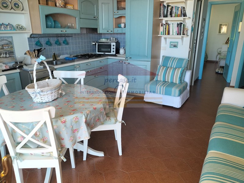 Appartamento con bella vista mare e terrazzo vivibile composto da ingresso in luminoso soggiorno con angolo cottura ben attrezzato, camera letto matrimoniale, cameretta, bagno con finestra, piccolo giardino pensile ad uso esclusivo con accesso dal terrazzo, posto auto coperto. Riscaldamento autonomo a gas. Molto curato e ben arredato. A poche centinaia di metri dalla passeggiata a mare e dalla pista ciclabile.