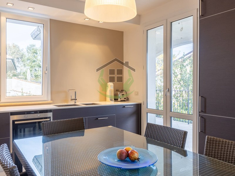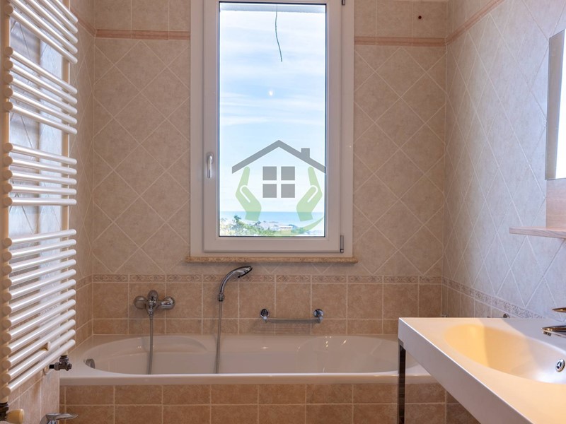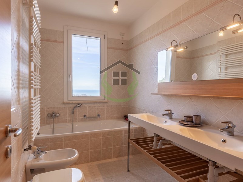 Eleganti le finiture tra cui scala in legno e ferro battuto, pavimentazione in parquet, bellissima la vista mare.