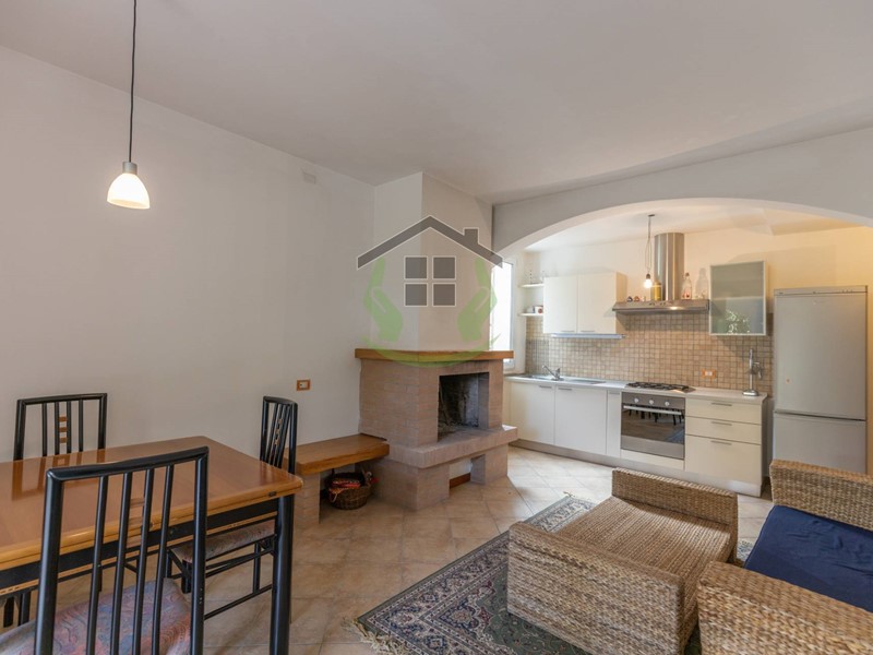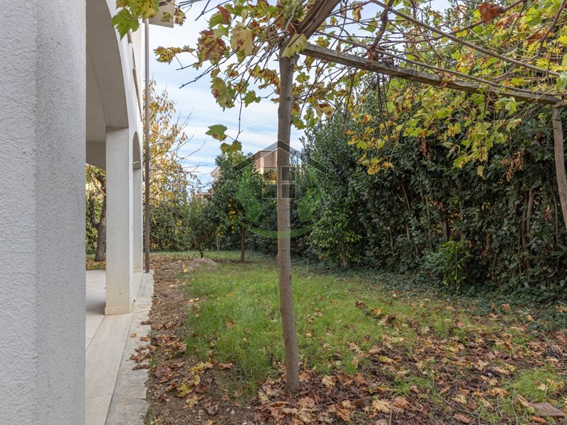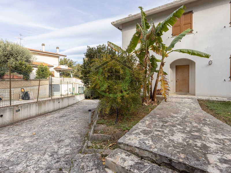 Piano terra con giardino di oltre 600 mq con numerosi alberi da frutta portico ingresso su open space da 77 mq con termo camino, studio, bagno, rispostiglio;