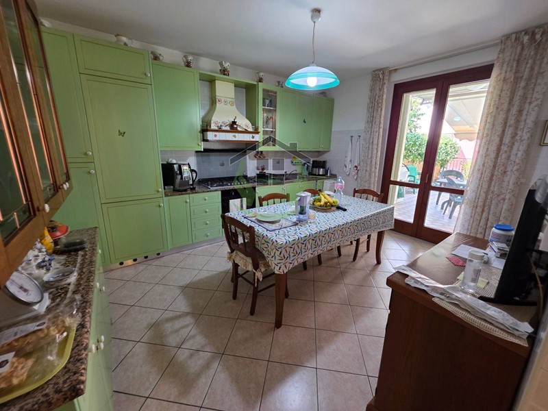 L'unità si presenta completa d'ingresso su ampio soggiorno con cucina abitabile, tre camere da letto tutte matrimoniali, due bagni entrambi finestrati di cui uno con vasca ed uno con doccia; Tutti i locali hanno accesso alla corte esterna sui lati Est - Nord - Sud, presenti ottime finiture quali pavimentazione in gres porcellanato, zanzariere, tende da sole motorizzate con sensore pioggia e vento, completo di impianto di climatizzazione Daikin, impianto d'allarme con sensori volumetrici e perimetrali, impianto irrigazione, garage con finestra e serranda automatica.