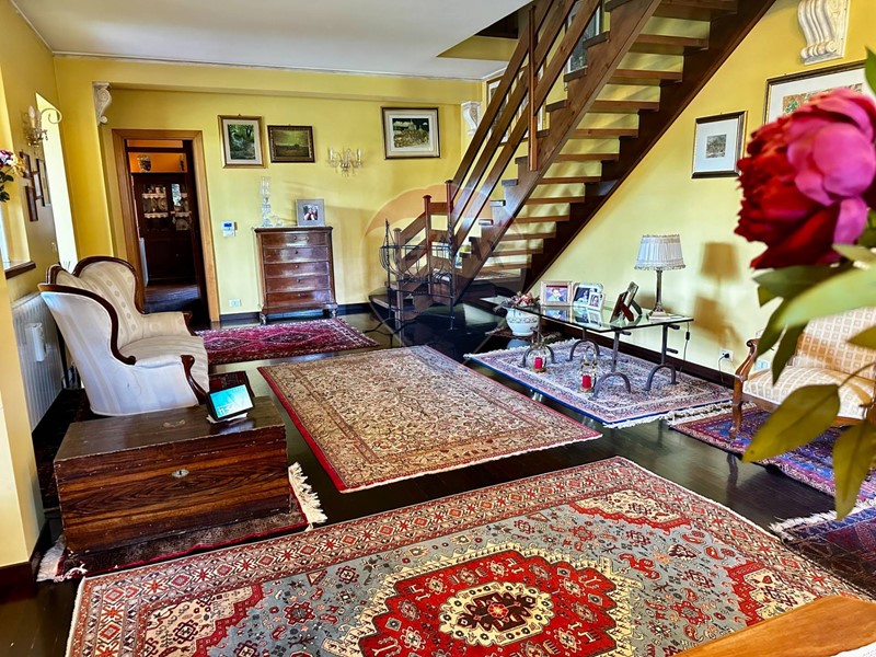 La villetta è composta da 12 locali, gode di uno spendido salotto con parquet e camino, uno studio, una cucina abitabile con sfogo sul giardino, bagno lavanderia e dispensa al piano terra;