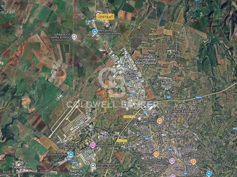 Adiacente alla Fiera di Viterbo, lungo la strada Statale Cassia Nord, a soli 5 Km dalla Città dei Papi e 4 Km dalla Superstrada, capannone industriale di 3100 mq, con area di pertinenza esclusiva circostante di circa 2200 mq.