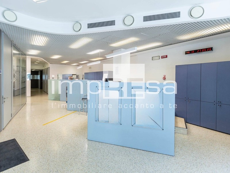 Completano il piano terra due uffici privati, adatti come aree di consulenza o direzione, due locali adibiti come vani tecnici e un bagno di servizio.