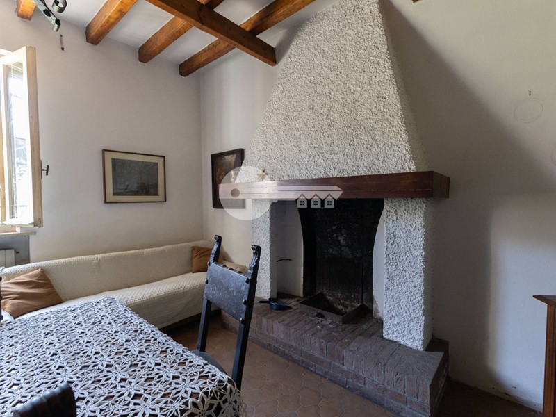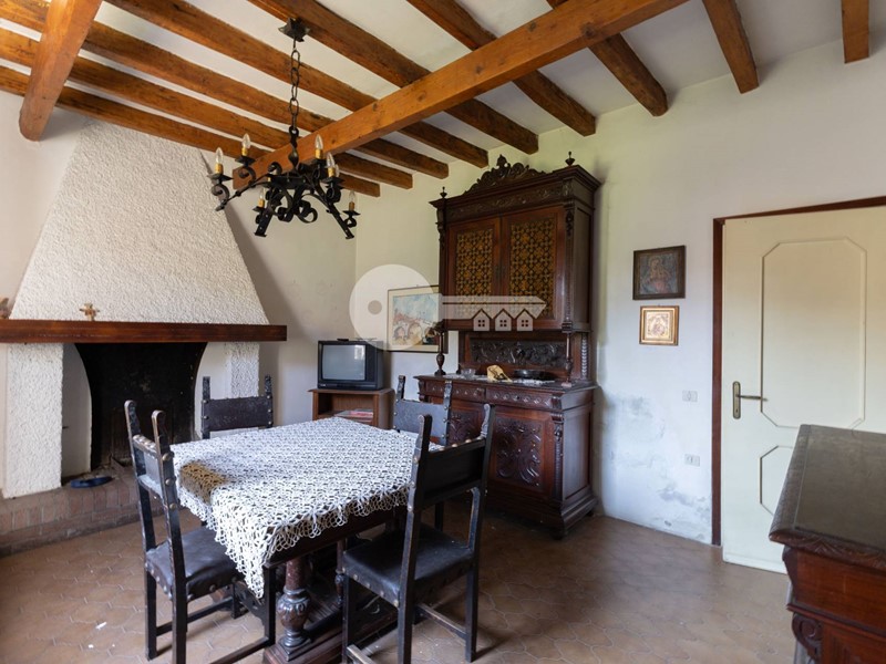Al piano terra troviamo lampio ingresso, il soggiorno con camino a legna e travi a vista, la cucina separata e abitabile, uno studio arricchito da camino a legna e un ripostiglio comodo come dispensa. Le finestre del piano terra sono dotate di doppi vetri, assicurando isolamento e comfort.