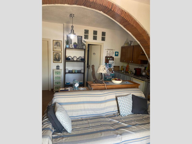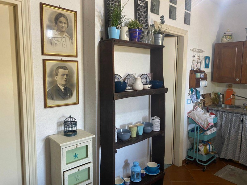 Vendesi delizioso e curatissimo bilocale di 48 mq, Marciana Marina zona campagna, 1km dal mare vicino percorsi trekking e bike, parte di un antico nucleo di case contadine e di pescatori con vista su golfo di Marciana Marina e Capo d Enfola. Composto da : accesso in antica strada privata con tipico muretto a secco e spazio antistante si accede alla zona living attraverso una porta in castagno trattato. Il salotto, luminoso con pietà finestre e due finestre accessoriate da inferriate, ha doppio camino: pellet e tradizionale dove cuocere a mano il pane e pizze; angolo pranzo con deliziose e pregiate piattate in noce recuperate risalenti ai primi 900; angolo cottura suddiviso da un grande arco, un grande e profondo magazzino, un bagno con doccia decorato e impreziosito da mensole in legno come in altri punti dell immobile. Pavimento in mattoni cotti a forno . Il tutto perfettamente restaurato e ottimamente tenuto. Ideale per famiglia e investimento turistico. Nessuna spesa condominiale. Terreno collegato di circa 200 mq con posto auto e vista altrettanto panoramica.