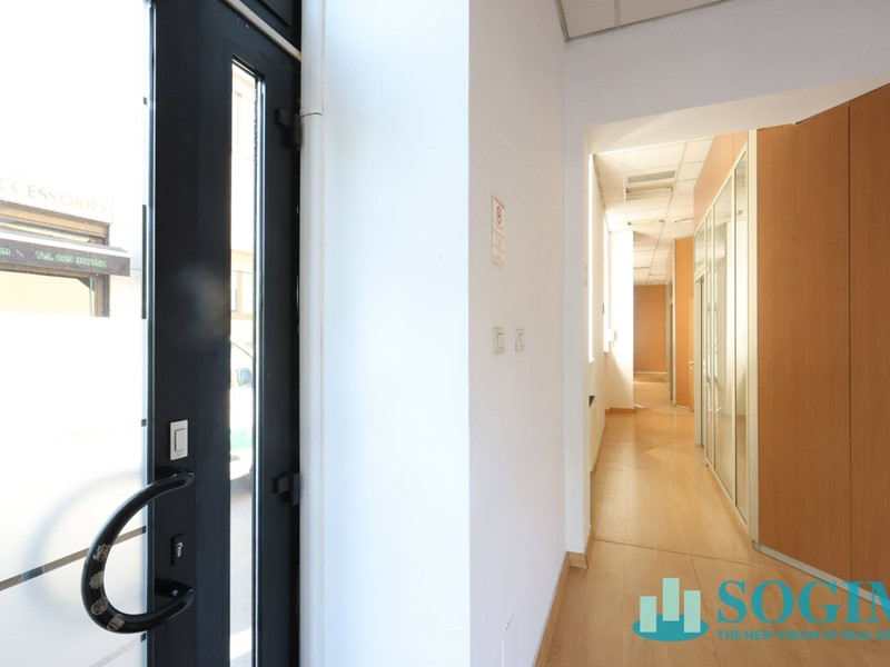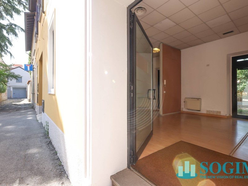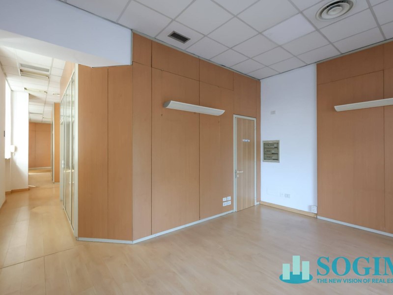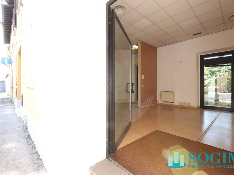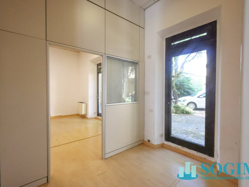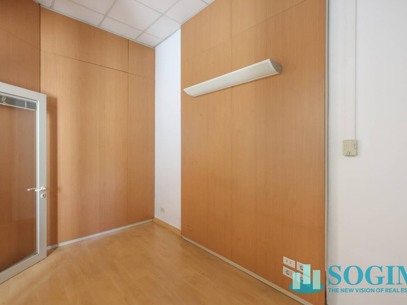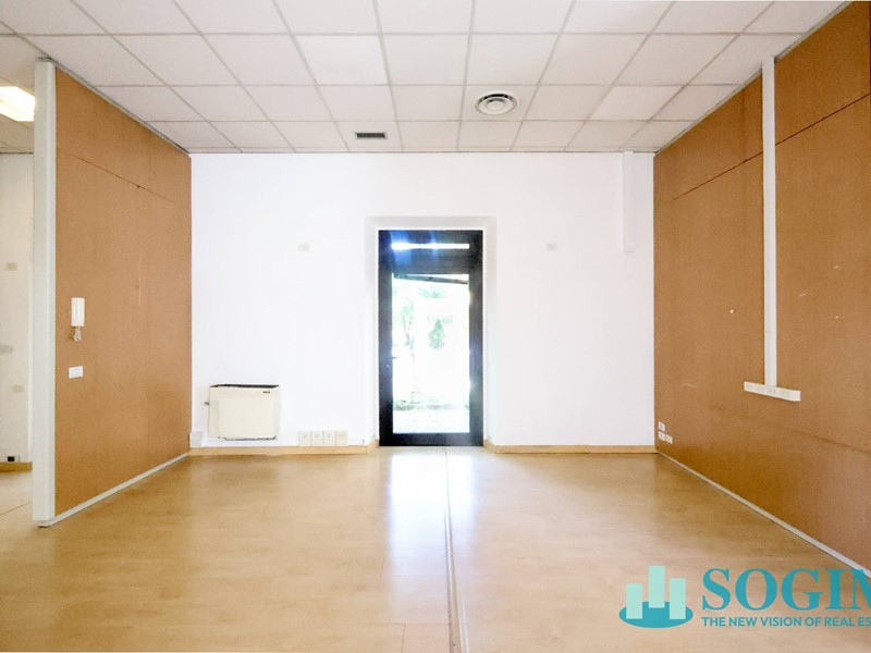 La superficie totale del locale è di 170 metri quadrati, distribuiti su due livelli, piano terra mq 150 uso commerciale, oltre 40 mq. al piano interrato. Attualmente il locale è suddiviso in vari uffici separati da pannelli, creando così uno spazio versatile e adattabile alle esigenze del futuro inquilino. Il locale dispone di due posti auto all'interno della corte, e compresi nel canone di locazione annuale.