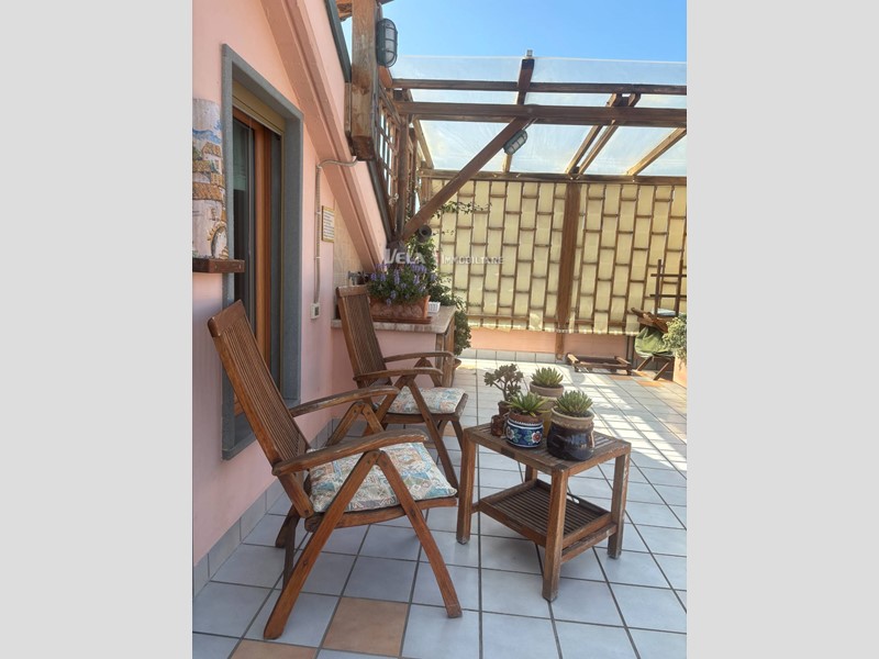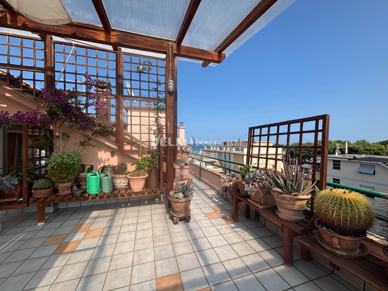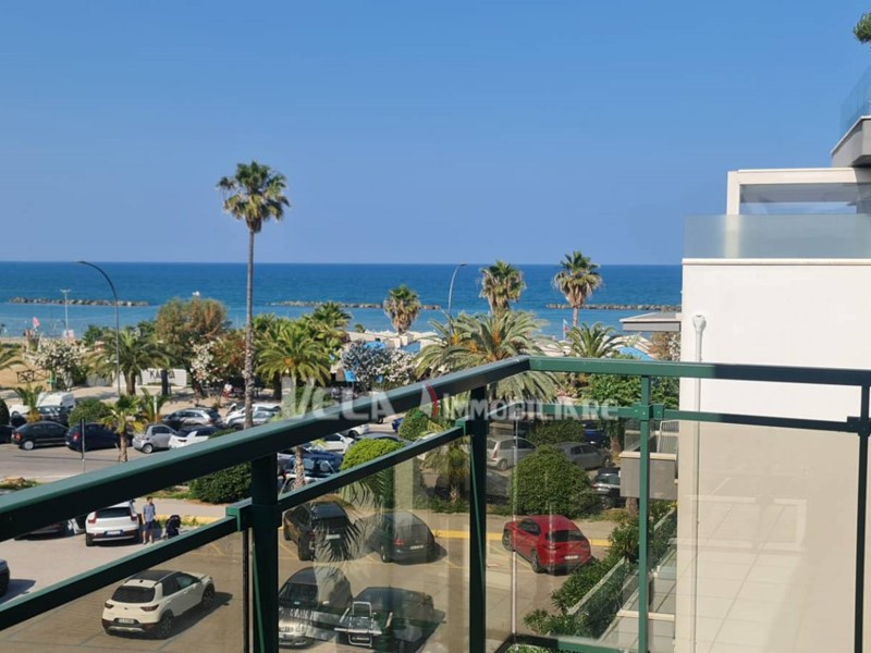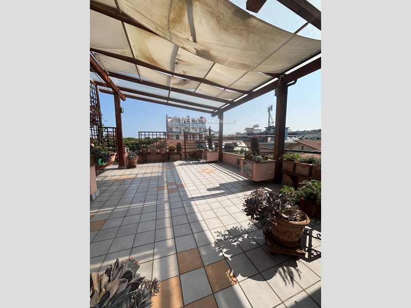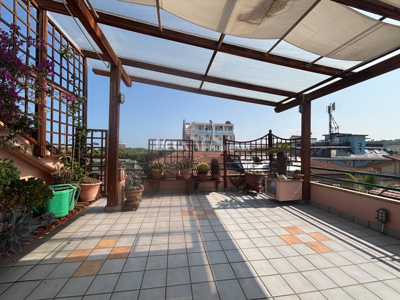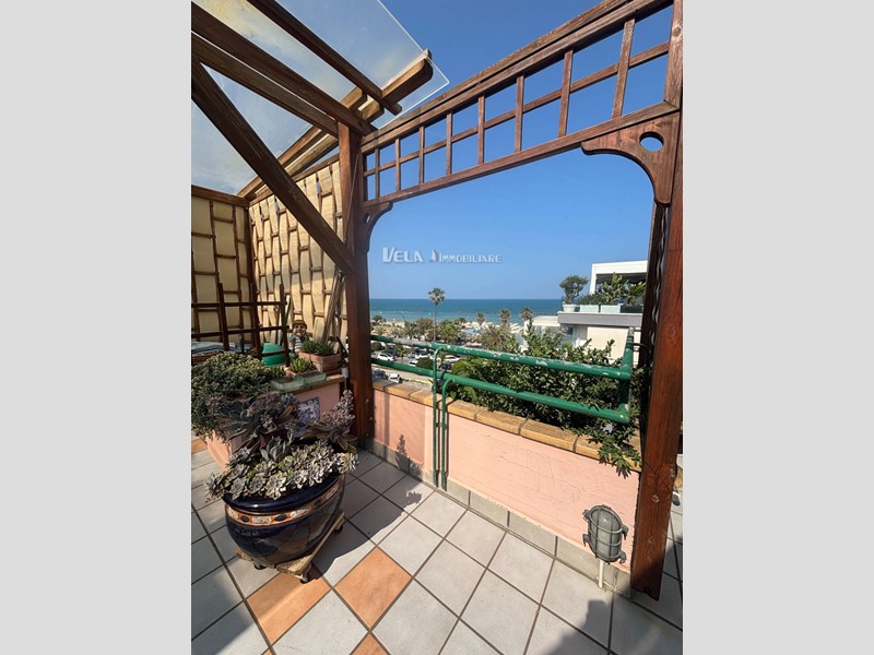 SECONDA FILA MARE - San Benedetto del Tronto. Con accesso diretto dal lungomare Marconi su una strada privata, proponiamo un attico esclusivo con una vista spettacolare e aperta sul mare della nostra bella Riviera della Palme e sulle colline circostanti. La casa si sviluppa su 2 piani, terzo e quarto, con un ascensore interno all'ultimo piano dove troviamo la zona giorno composta da living, camino, cucina, studio, bagno e lavanderia, il tutto servito da un meraviglioso terrazzo perimetrale di oltre 150 mt, libero su tutti i lati. Questo spazio davvero unico è ricco di piante e fioriere, e attrezzato con una semi-copertura che lo rende fresco e fruibile in gran parte dell'anno.