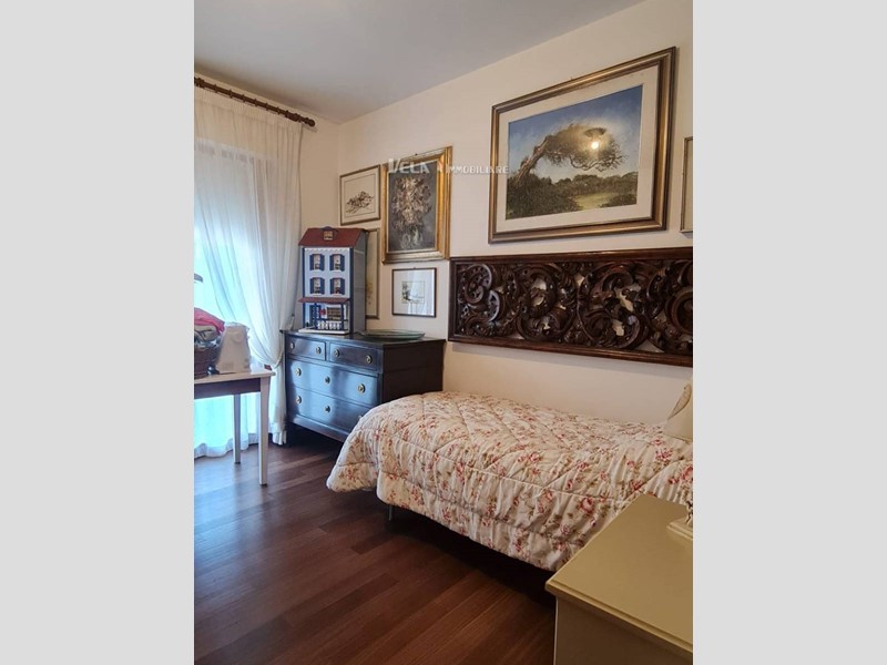 A completare la proprietà, l'appartamento dispone di un doppio box auto al piano seminterrato, di un posto auto esterno, di una cantina molto comoda, e di una legnaia/ripostiglio al piano terra.