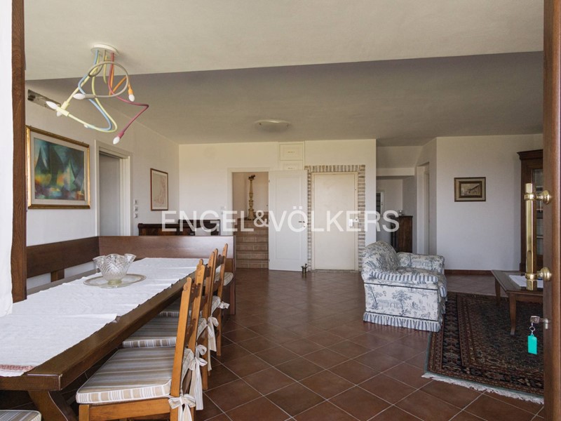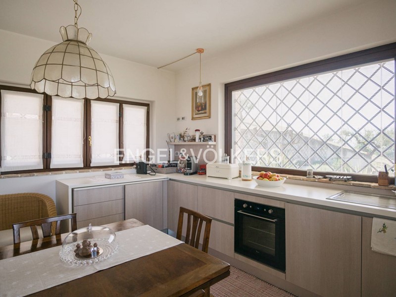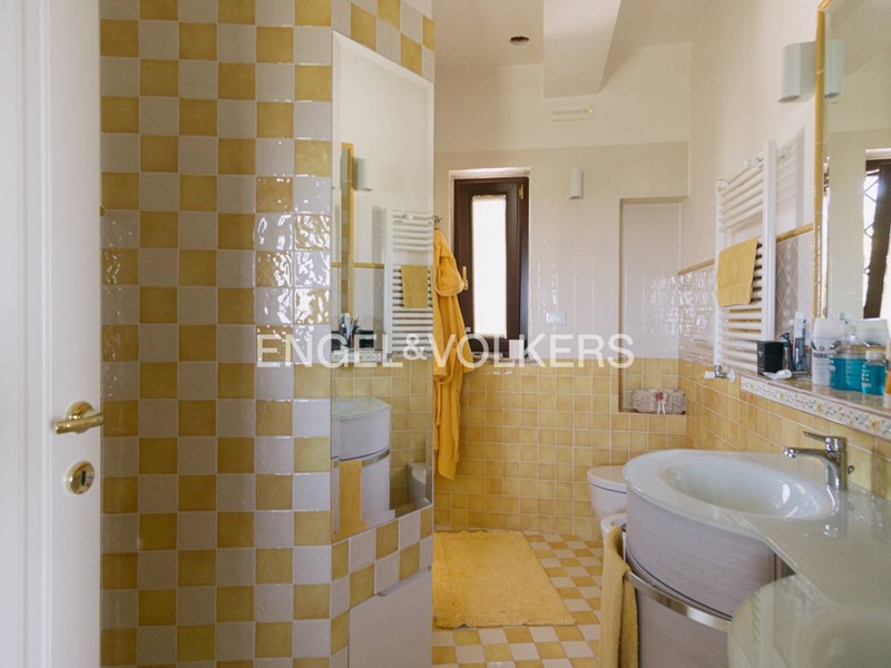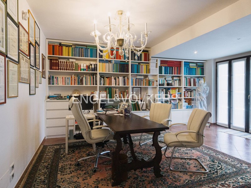 Allinterno, la villa si sviluppa su più livelli per una superficie complessiva di circa 412 m², tutti serviti da un comodo ascensore interno. Gli spazi abitativi sono ampi e luminosi: un grande salone, una sala da pranzo raffinata, uno studio tranquillo e due cucine perfettamente attrezzate compongono il cuore della casa, pensato per accogliere la vita quotidiana con stile ma anche per ricevere ospiti in unatmosfera di assoluta ospitalità.