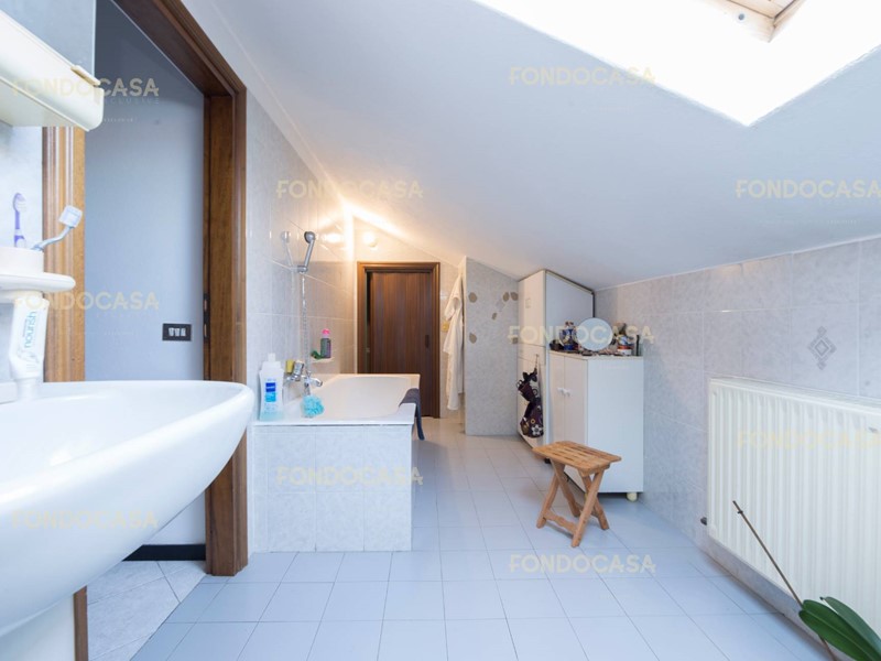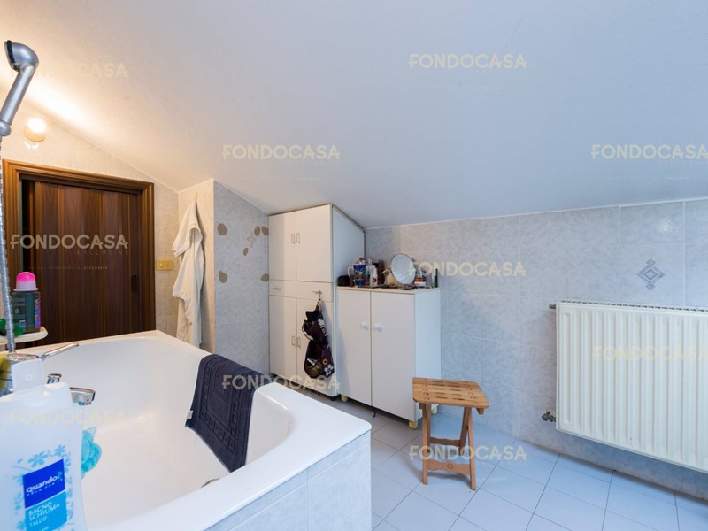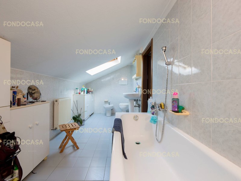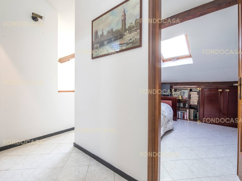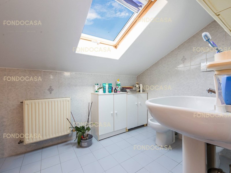 Dalla zona di ingresso parte la scala che ci porta al piano superiore dove abbiamo due ulteriori camere da letto ed un bel bagno di generose dimensioni attrezzato di vasca.